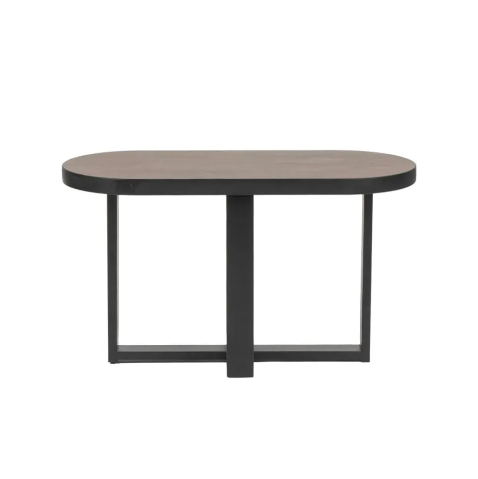 Jasper is een gave, ovale salontafel gemaakt van melamine. Het tafelblad rust op een stevig metalen onderstel. Verkrijgbaar in S of L en in drie trendy kleuren: mango, walnoot & zwart. Leuk om te combineren met sidetable Jasper.
