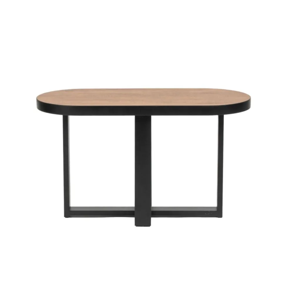 Jasper is een gave, ovale salontafel gemaakt van melamine. Het tafelblad rust op een stevig metalen onderstel. Verkrijgbaar in S of L en in drie trendy kleuren: mango, walnoot & zwart. Leuk om te combineren met sidetable Jasper.