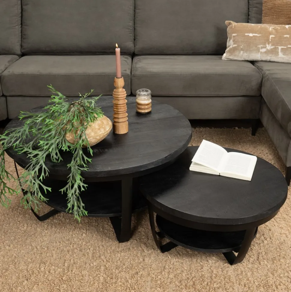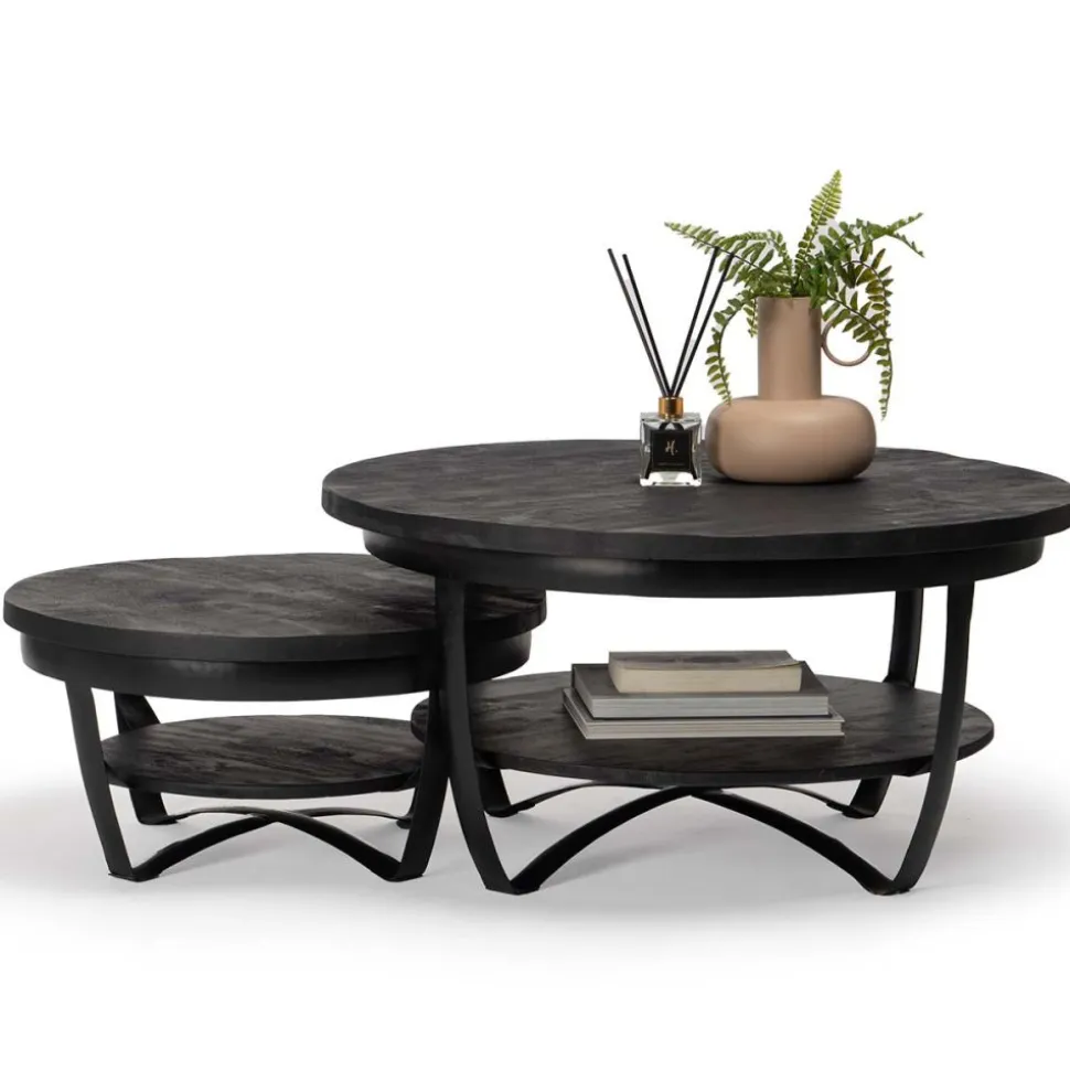 Salontafel Ryan geeft je interieur een industriële en stoere touch en is heel goed te combineren met diverse woonstijlen en meubels. Het metalen frame is sterk en robuust waardoor de tafel stevig op de grond staan. Deze schitterende salontafel, met zijn ronde vorm, is beschikbaar in zowel een compacte als ruimte uitvoering. Ideaal om te mixen en matchen!