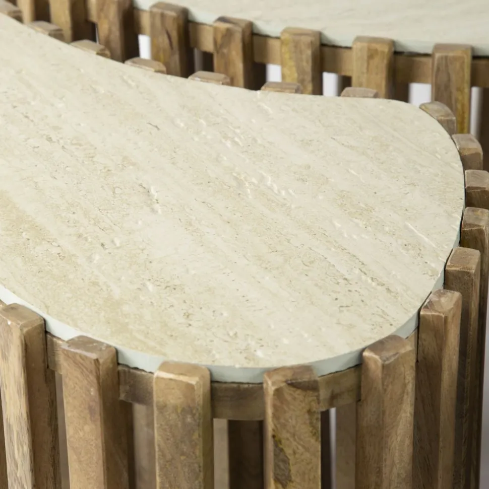 Salontafel set/3 niervorm Nuovo travertin / Massief mango zandkleur