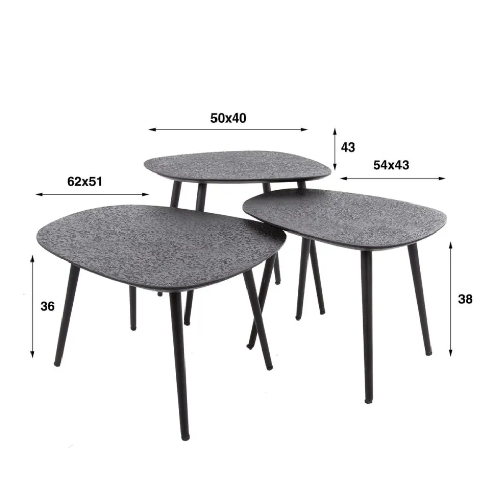 Salontafel set/3 vierhoekig metallic / Grijs