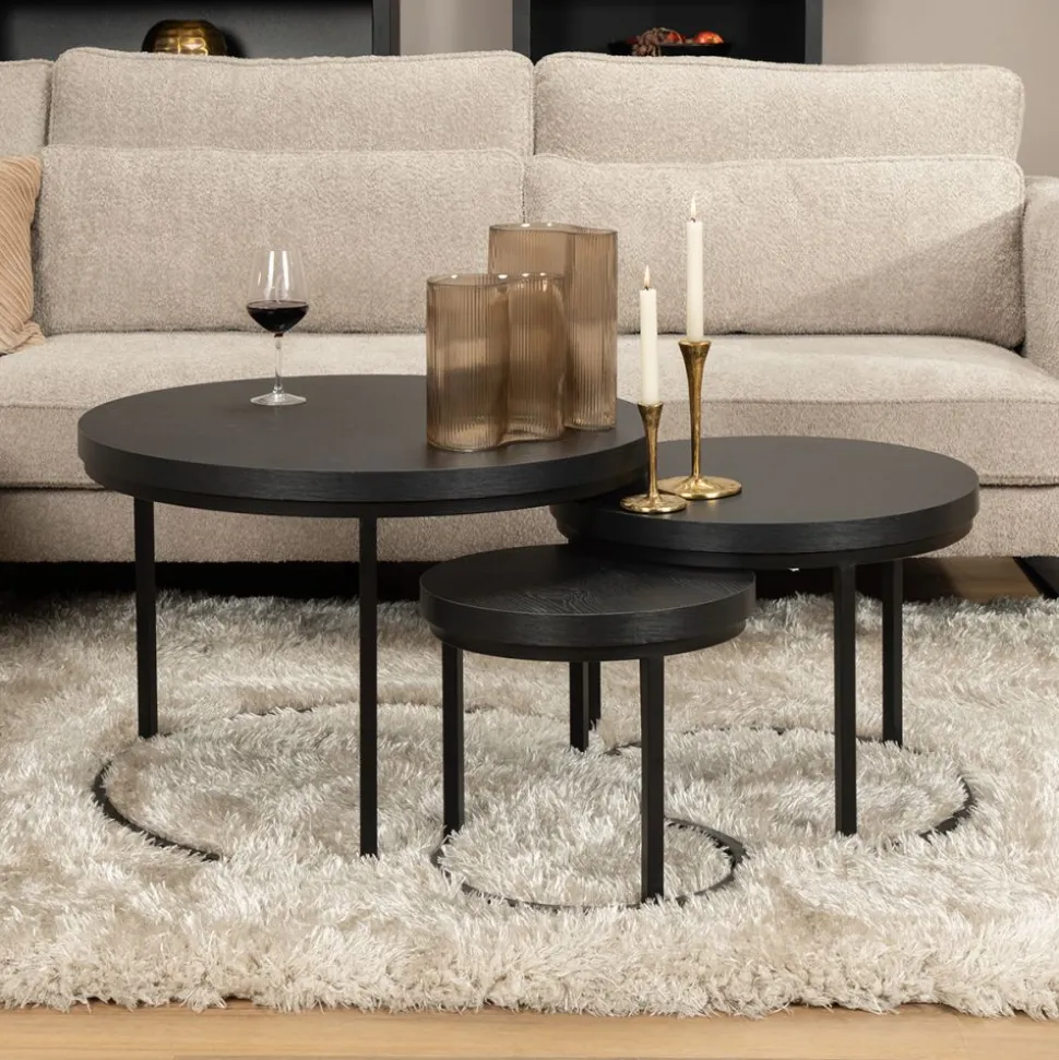 Ø75 x 50h cm | Ø55 x 44h cm | Ø40 x 37h cm | Tafelblad: Zwart