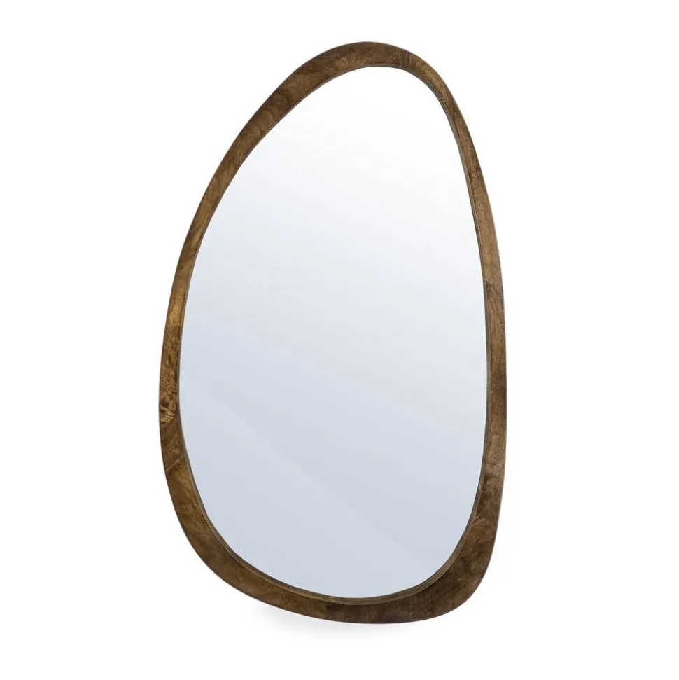De spiegel heeft gelakte afwerking en een lijst van mango hout. De spiegel is zowel horizontaal als verticaal op te hangen. Dit artikel is onderdeel van onze By-Boo collectie.
