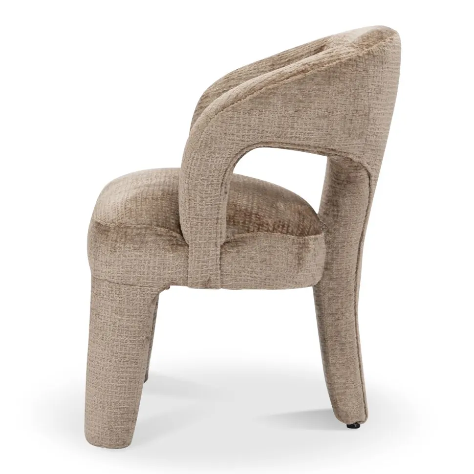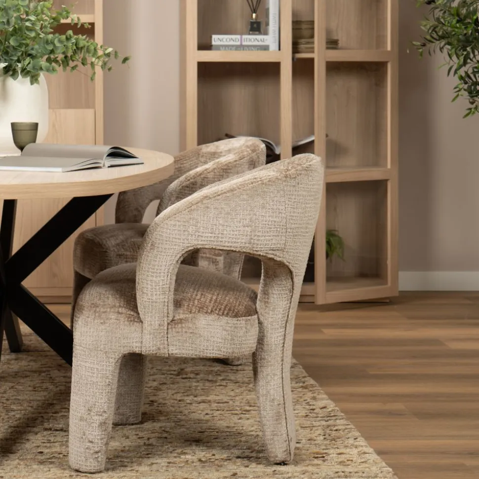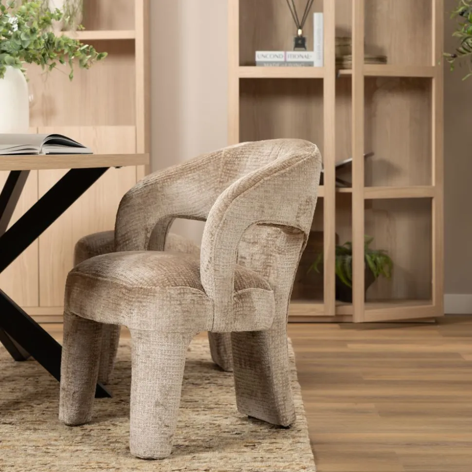 Maak kennis met Vieve, de stoel waar comfort en elegantie samenkomen in een modern design. Met zijn zachte ronde vormen, volledig bekleed frame en open rugdetail straalt Vieve luxe en verfijning uit. De comfortabele zitting en armleuningen zorgen ervoor dat je heerlijk kunt natafelen in stijl. Verkrijgbaar in twee warme tinten: beige en antraciet.