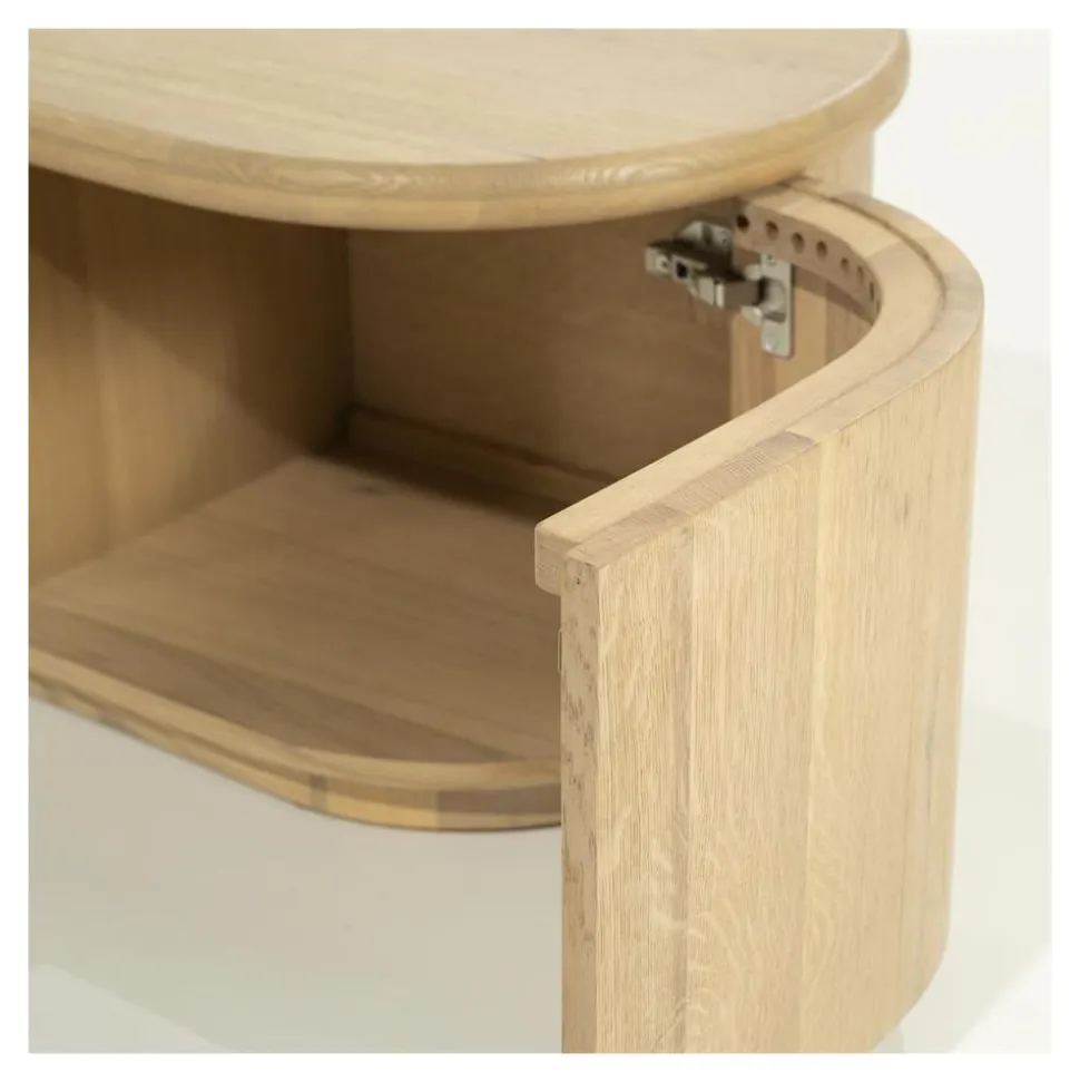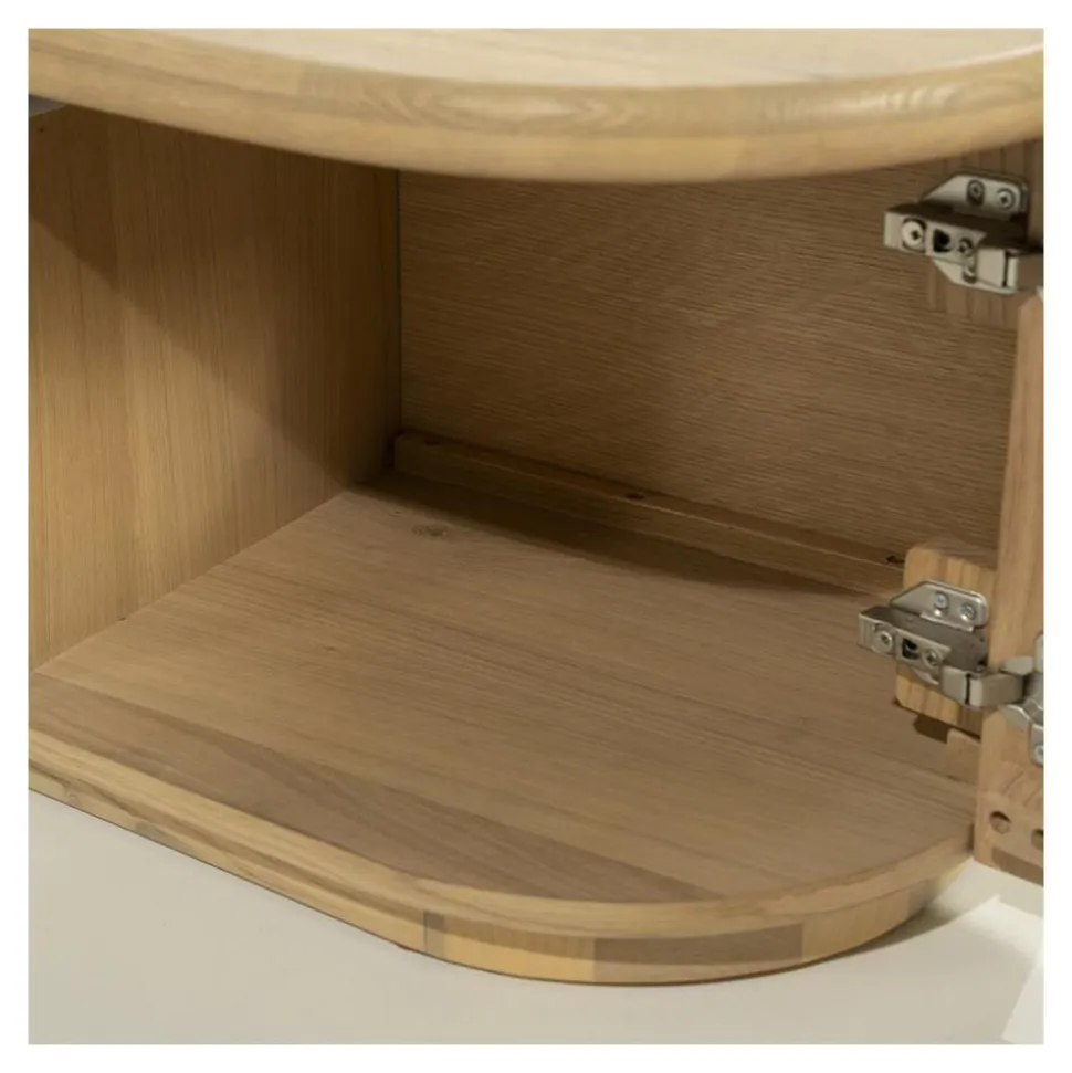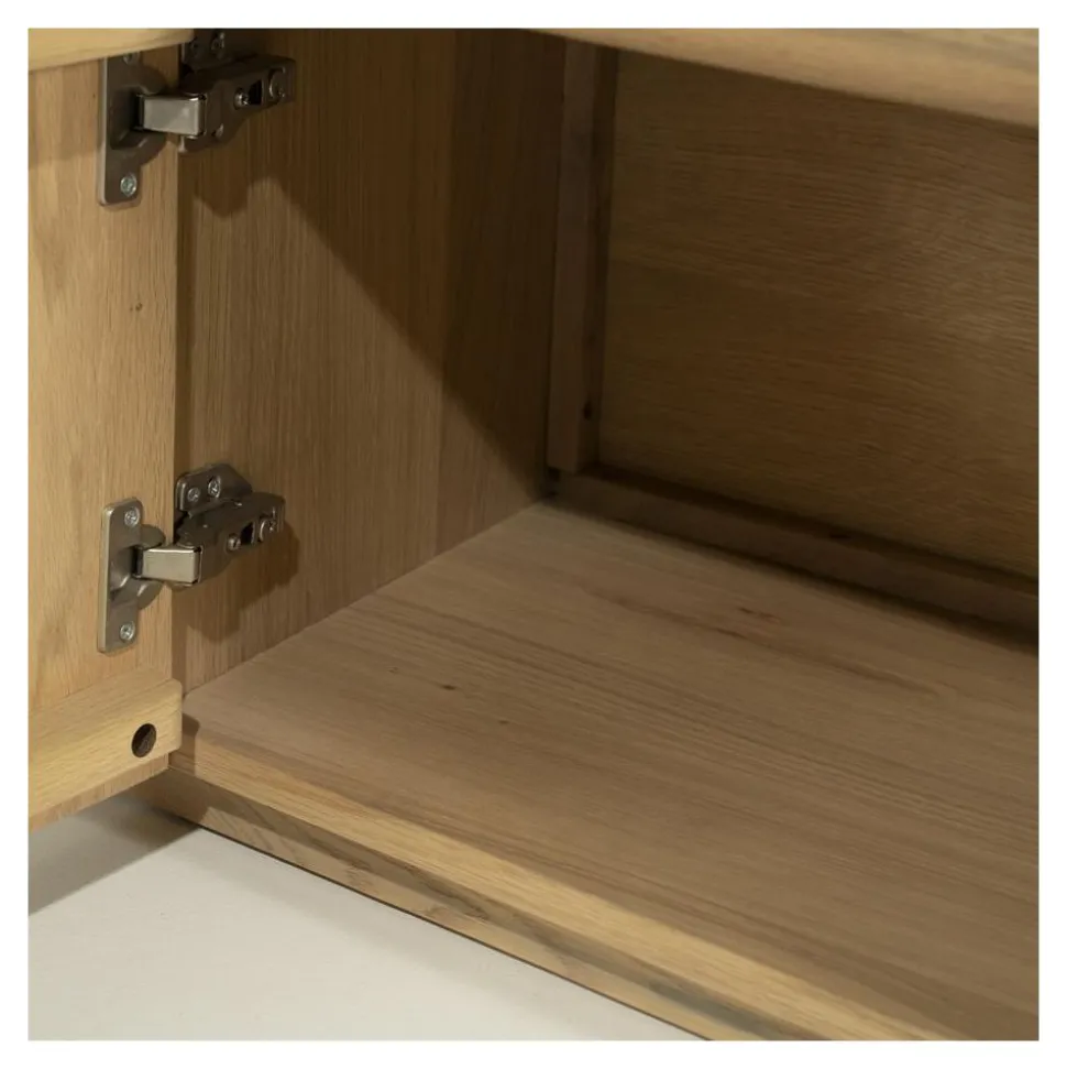 TV meubel Josh schittert door zijn natuurlijke uitstraling, mede dankzij de combinatie van massief eiken en hoogwaardig eikenfineer. De subtiele golfvorm in de voorzijde geeft het TV meubel een elegante, vloeiende uitstraling die direct opvalt in elke woonkamer.
