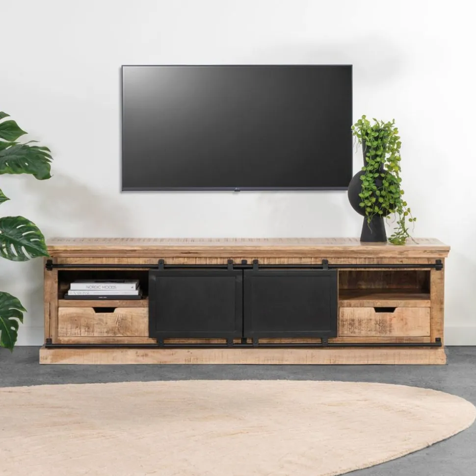 Het mango hout heeft een warme kleur en een grof patroon in houtnerf, waardoor ieder artikel een uniek meubelstuk is.