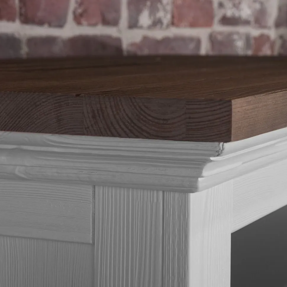 Dit artikel is onderdeel van woonserie Toulouse. De serie is vervaardigd van massief grenenhout in de kleur P9 en wit geverfd en voorzien van een bruin bovenblad. De handgrepen zijn netjes ingefreesd en de deurtjes van deze woonkamer meubelen zijn voorzien van een slot met sleutel. Deze serie past in een landelijk of modern interieur.