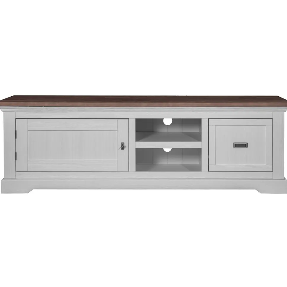 Dit artikel is onderdeel van woonserie Toulouse. De serie is vervaardigd van massief grenenhout in de kleur P9 en wit geverfd en voorzien van een bruin bovenblad. De handgrepen zijn netjes ingefreesd en de deurtjes van deze woonkamer meubelen zijn voorzien van een slot met sleutel. Deze serie past in een landelijk of modern interieur.