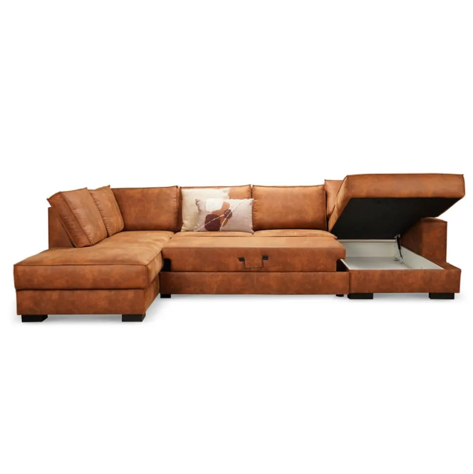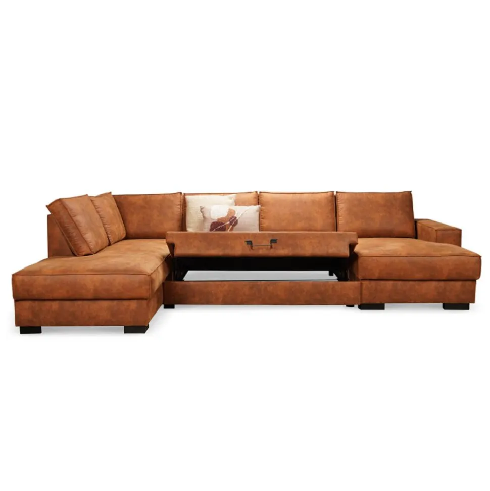 Marly is een heerlijke hoekbank met diverse mogelijkheden. De bank is uitgevoerd in een mooie stof die gemakkelijk te onderhouden is. Met deze luxe u-bank heeft iedereen in het gezin een lekker plekje op deze bank. Of je graag wil zitten, liggen of loungen. Het loungegedeelte kan omhoog geklapt worden waardoor er opbergruimte ontstaat. En onder het middelste zitgedeelte kan er een deel uitgetrokken worden, waardoor je met je benen lekker languit kunt liggen en zelfs kunt slapen. De fantastische kleur maakt deze bank helemaal af!
