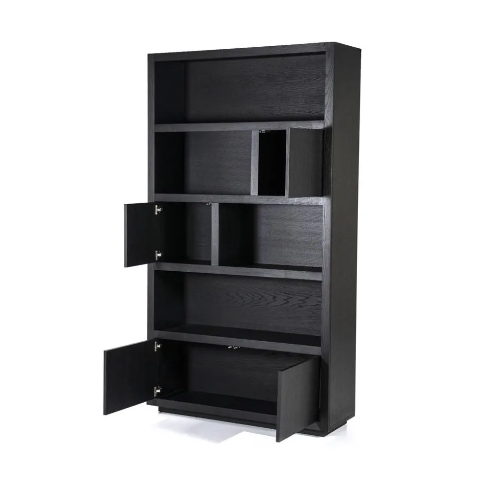 De indeling is overzichtelijk en functioneel: de open vakken bieden ruimte om decoratie, boeken of favoriete items mooi te presenteren, terwijl de vakken met deuren ideaal zijn om spullen netjes en uit het zicht op te bergen. Zo creëer je een perfecte balans tussen tonen en organiseren.
