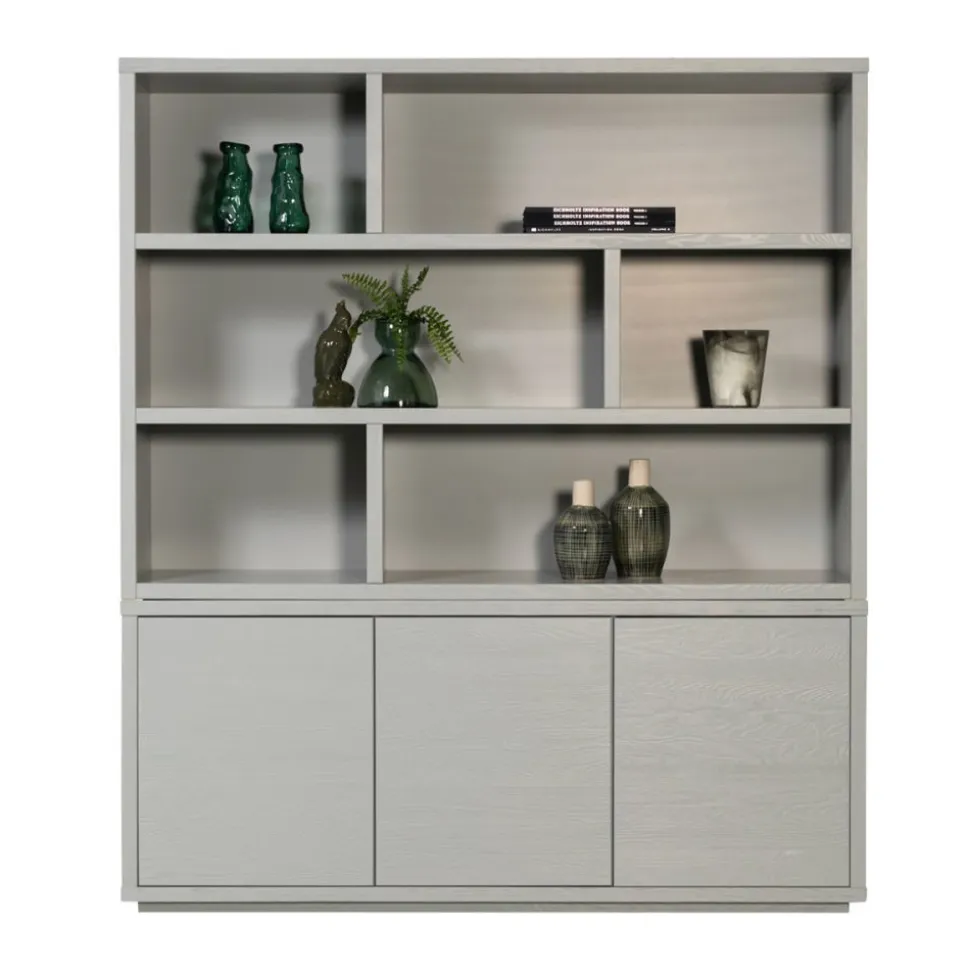 Maak kennis met onze stijlvolle Saalbach van topkwaliteit! Uniek in zijn soort en exclusief verkrijgbaar bij Haco wonen en slapen! Deze serie meubels hebben een luxe en tijdloze uitstraling. De kasten zijn gemaakt van grenen hout en uitgevoerd in een zachte grijze kleur. De deurtjes zijn greeploos en makkelijk te openen door middel van het push-open systeem. Met de open vakken van de kasten heb je voldoende ruimte om leuk te decoreren voor bijvoorbeeld; fotolijstjes, boeken, souvenirs en natuurlijk de meest trendy accessoires. Mix and match de verschillende meubels en ga voor dat lekkere thuisgevoel !