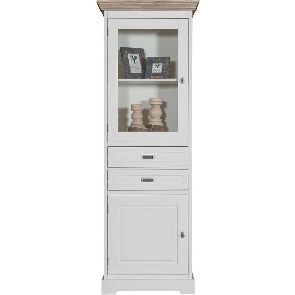 Dit artikel is onderdeel van woonserie Florence. De serie is vervaardigd van massief old pinewood, wit geverfd en voorzien van een bruin bovenblad. De handgrepen zijn netjes ingefreesd en de deurtjes van deze woonkamer meubelen zijn voorzien van een slot met sleutel. Deze serie past in een landelijk of modern interieur.