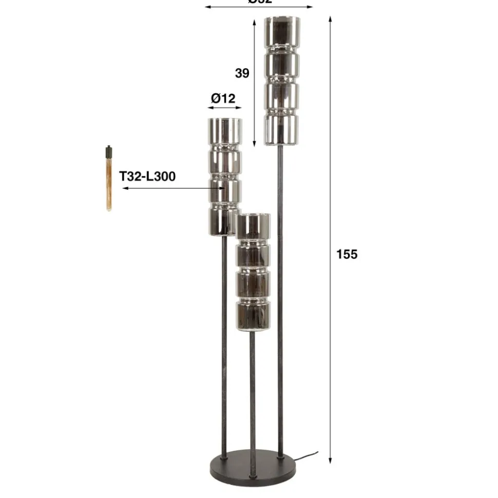 Vloerlamp 3L getrapt cylinder glas / Artic zwart
