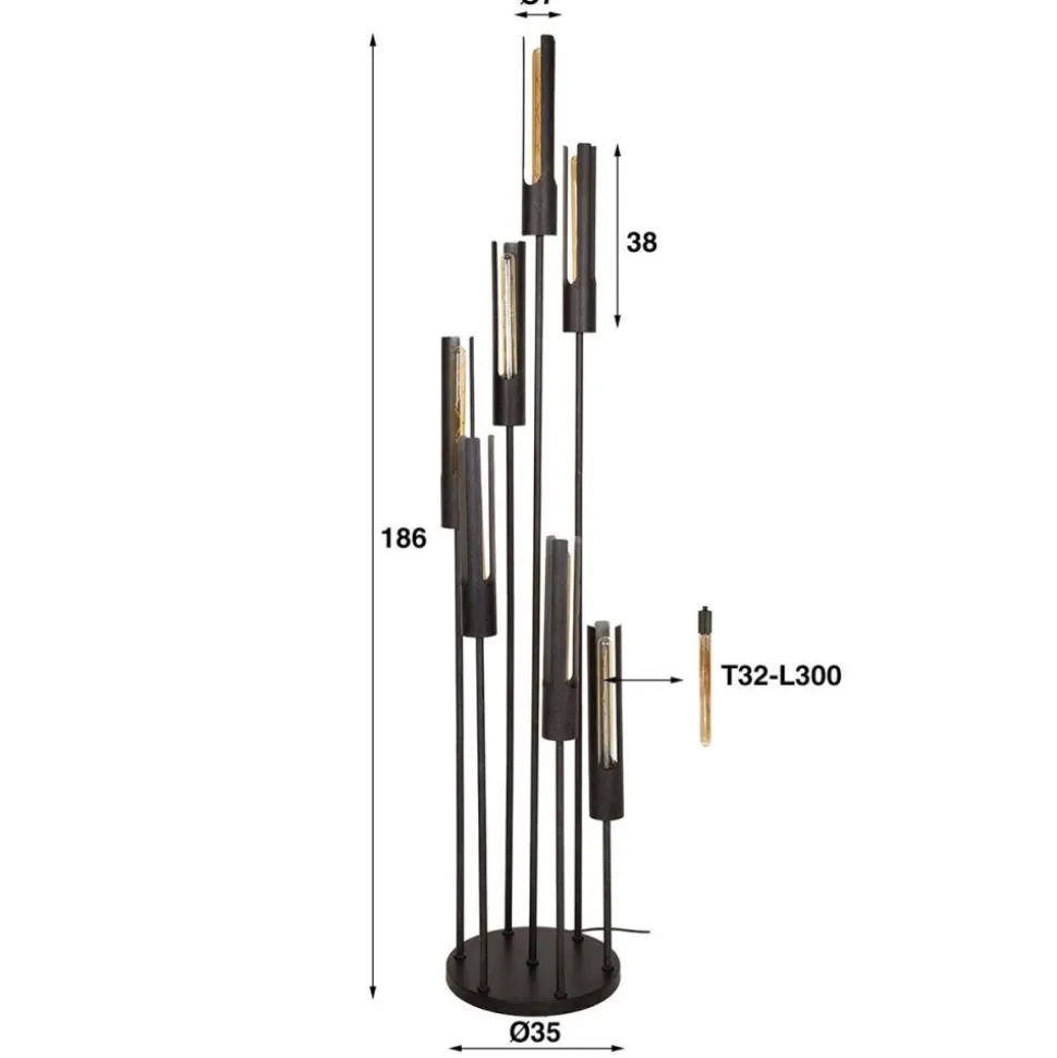 Vloerlamp 7L getrapt tube / Artic zwart