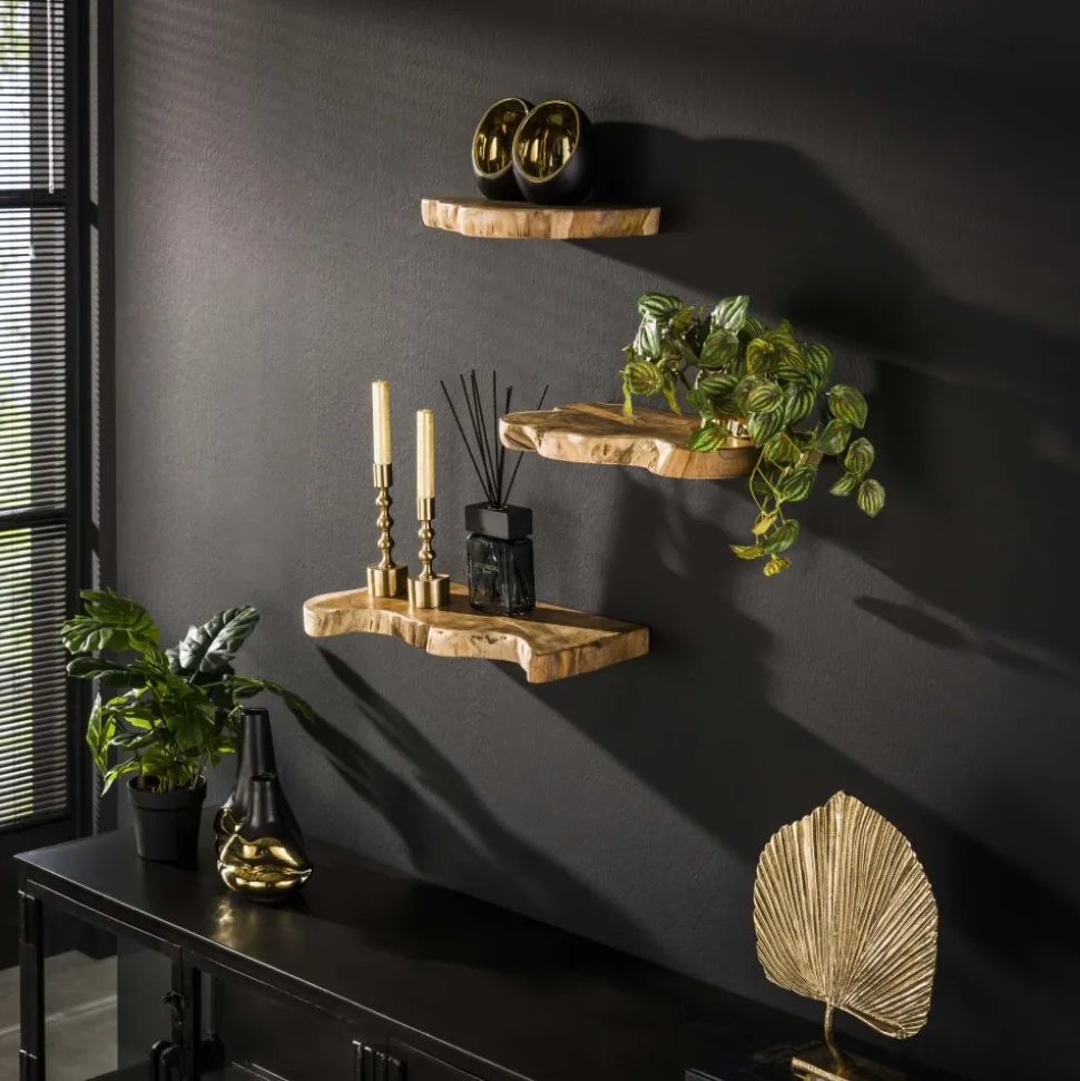 Wandschap natural line set/3 / Massief gerecycled teakhout
