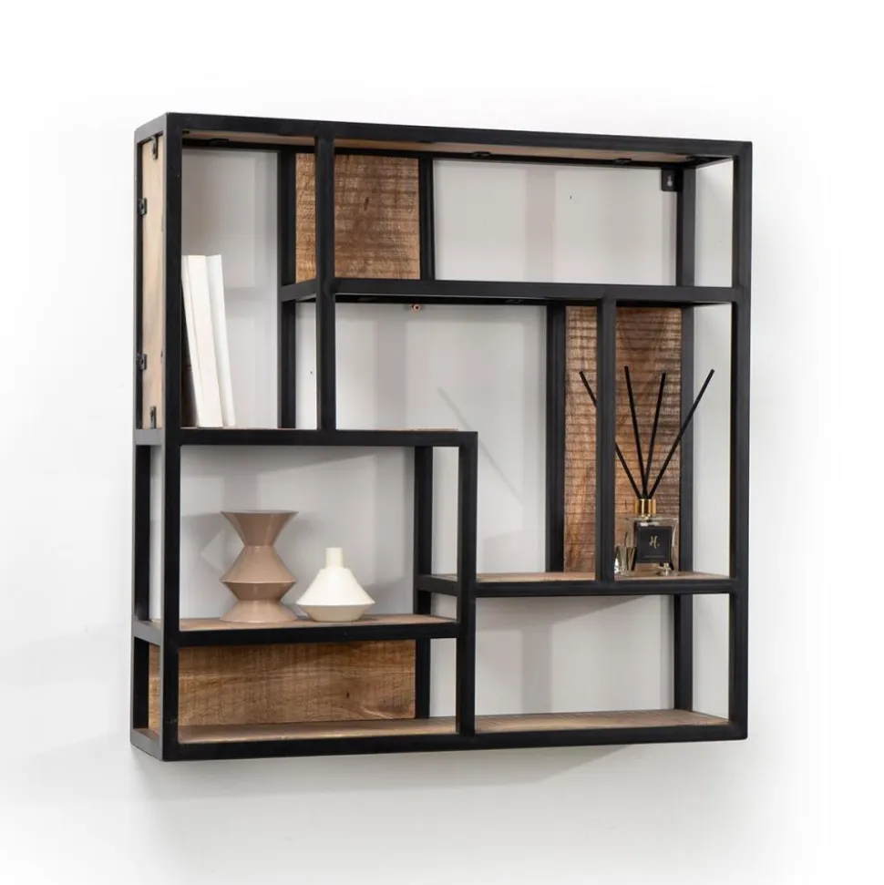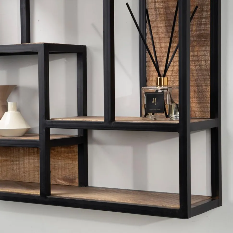 Verfraai uw muur nu met dit schitterende wandrek Sandro. Vervaardigd van zwart metaal gecombineerd met mangohout. Een stoer wandrek dat door de diepte van 18 cm eenvoudig te decoreren is. Dit vierkante wandrek past makkelijk bij de rest van je interieur.