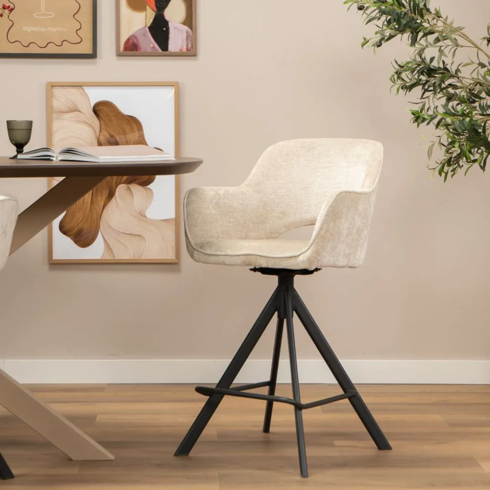 Lekker hoog tafelen doe je op barstoel Lynda! Deze comfortabele en stijlvolle barstoel is de perfecte aanvulling voor jouw counter- of bartafel. Door de hoge rugleuning en armleuningen heb je een goede ondersteuning en is het fijn zitten op deze barstoel. Snel leverbaar in twee kleuren: crème & taupe.