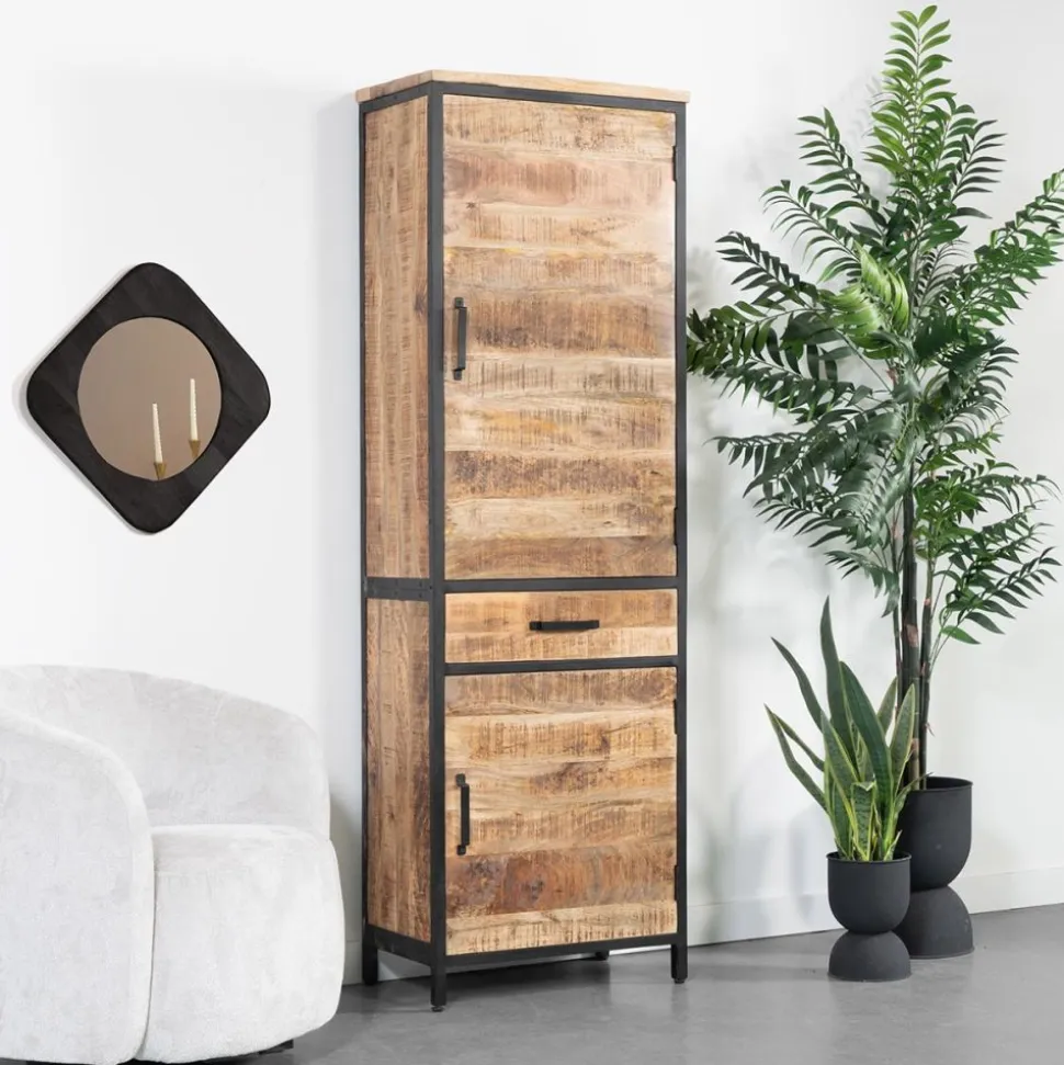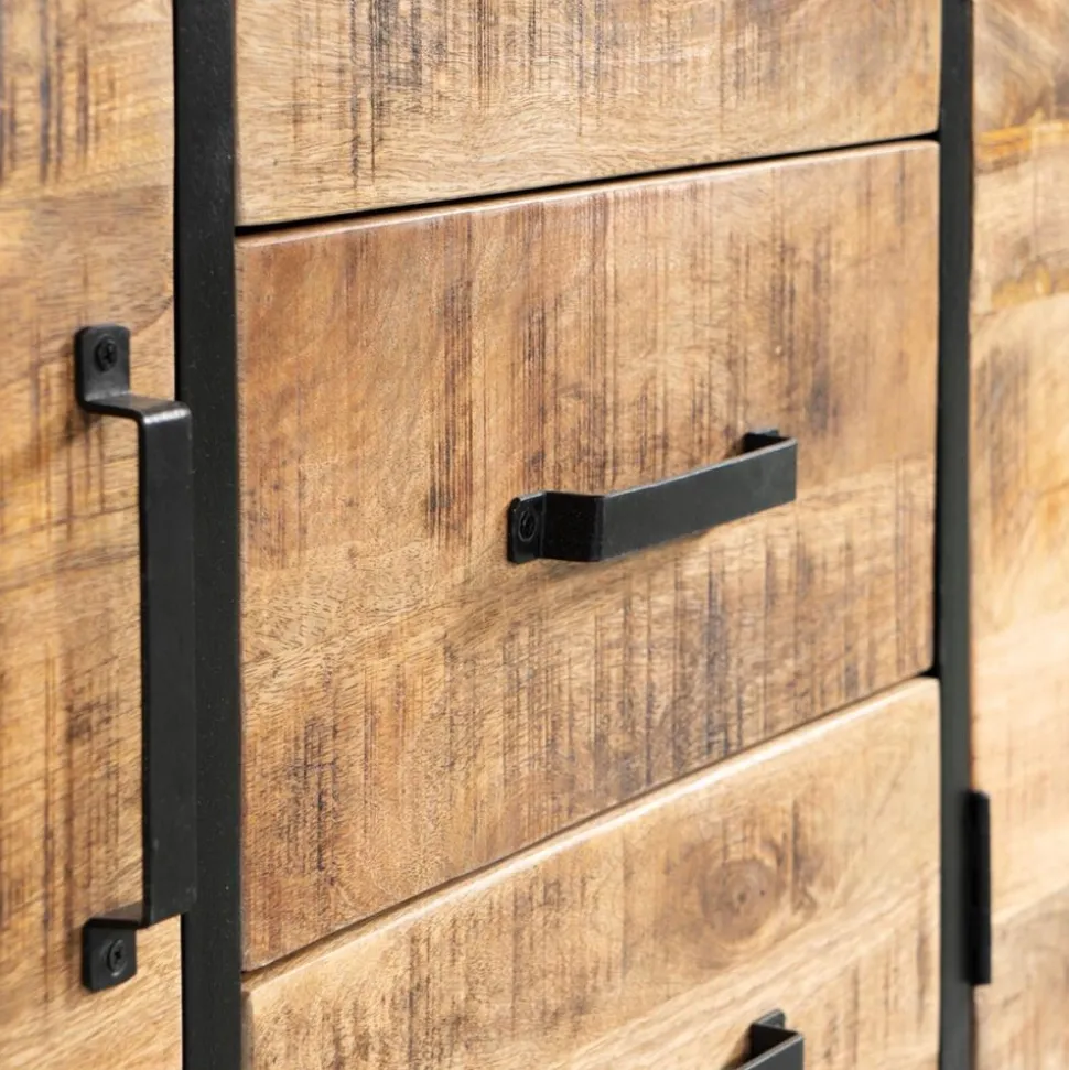 Dit meubel is onderdeel van de woonserie Jakarta. Deze stoere meubelserie kenmerkt zich door een gave combinatie van mango hout en metaal. De meubels zijn strak afgewerkt en zorgen voor een industriële sfeer in je woonkamer. De serie heeft ruime opbergladen en metalen handgrepen. De woonserie bestaat uit een barkast, bergkast, boekenkast, dressoir, salontafel en tv-meubel. Mix and match en maak je woonkamer compleet!