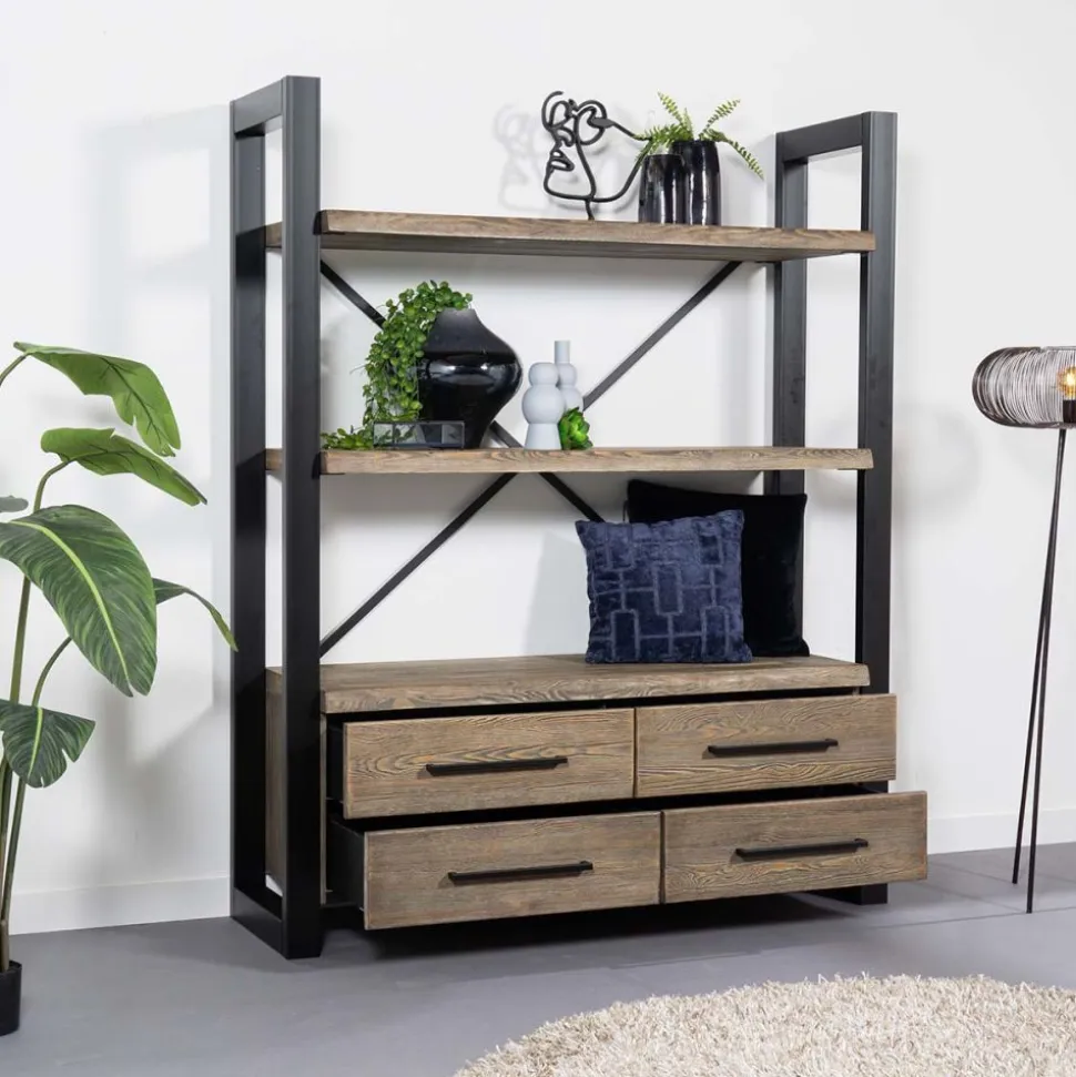 *Let op*Deze meubelen worden deels gemonteerd geleverd. U hoeft alleen het metalen frame en de legplanken te monteren. Omdat deze meubelen reeds voorgemonteerd zijn, dient u rekening te houden met de grootte en het gewicht. Indien uw meubelen bezorgt moeten worden op een etage zonder lift of via een smalle doorgang kan het zijn dat het per verhuislift afgeleverd dient te worden. Informeer dan naar de mogelijkheden.