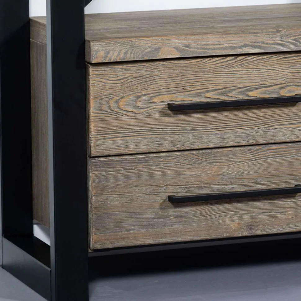 Uniek in Nederland en exclusief verkrijgbaar bij Haco wonen & slapen. Woonkamer serie Rough met boomstam afwerking! Deze unieke woonserie is uitgevoerd in massief grenen in de kleur old pine. Door de grove afwerking met een dikte van 5 cm zijn duidelijk de contouren van een boomstam te zien. Deze karakteristieke afwerking maakt ieder meubel uniek. Het zware metalen onderstel zorgt voor een stoere en robuuste uitstraling. Een schitterend natuurproduct dat goed past in een rustiek of modern interieur.