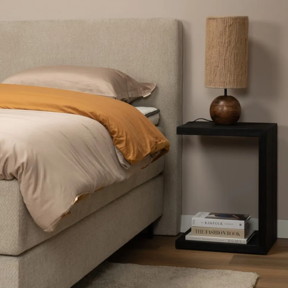 Boxspring: 90b x 200l cm | Hoofdbord: 100b x 115h cm