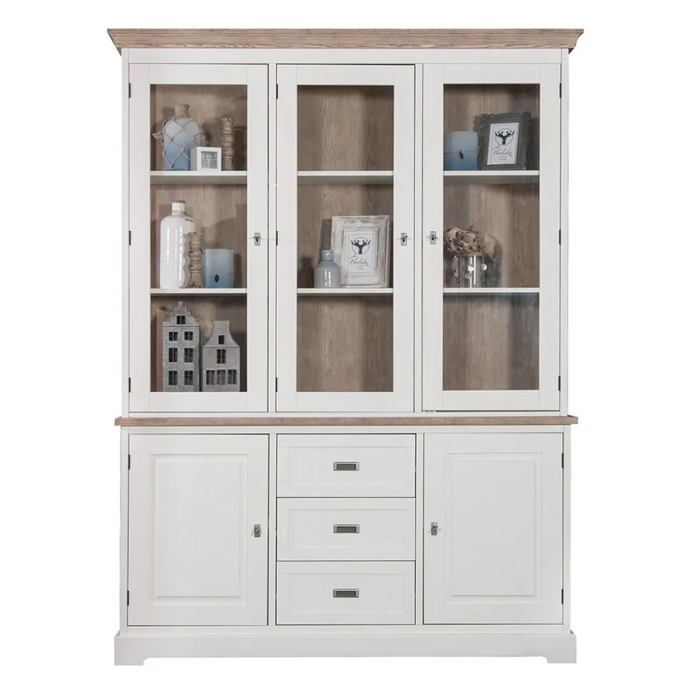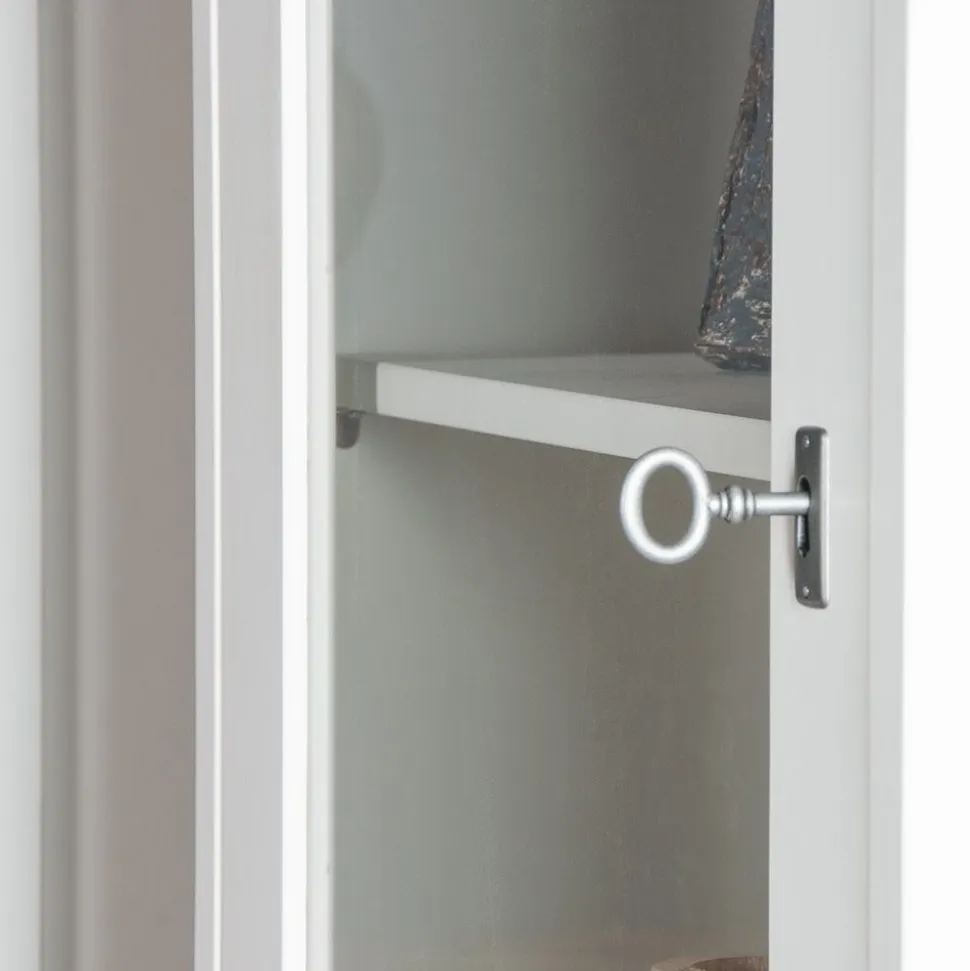 Dit artikel is onderdeel van woonserie Florence. De serie is vervaardigd van massief old pinewood, wit geverfd en voorzien van een bruin bovenblad. De handgrepen zijn netjes ingefreesd en de deurtjes van deze woonkamer meubelen zijn voorzien van een slot met sleutel. Deze serie past in een landelijk of modern interieur.