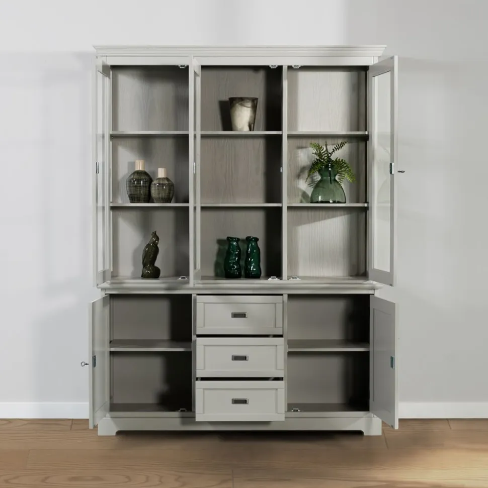 Maak kennis met onze stijlvolle buffetkast Florence van topkwaliteit! De buffetkast is vervaardigd van massief old pinewood, grijs geverfd. De handgrepen zijn netjes ingefreesd en de deurtjes van deze woonkamer meubelen zijn voorzien van een slot met sleutel. Deze serie past in een landelijk of modern interieur.