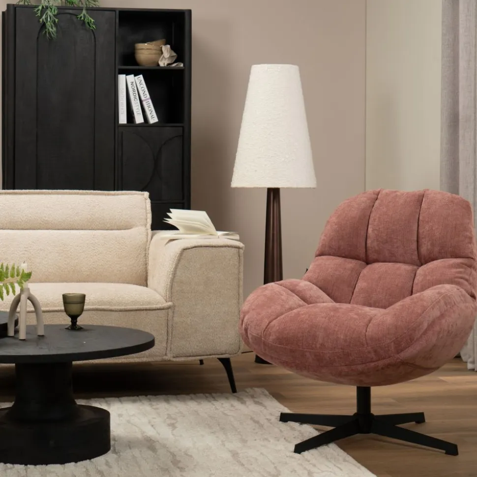 Draaifauteuil Bouke is de ideale combinatie van comfort en stijl. De brede en zachte zitting maakt het een perfecte fauteuil om in te ontspannen. Dankzij het draaisysteem en het trendy design past hij moeiteloos in elk interieur. Een stijlvolle toevoeging die jouw interieur een boost geeft en zorgt voor dat lekkere thuisgevoel!