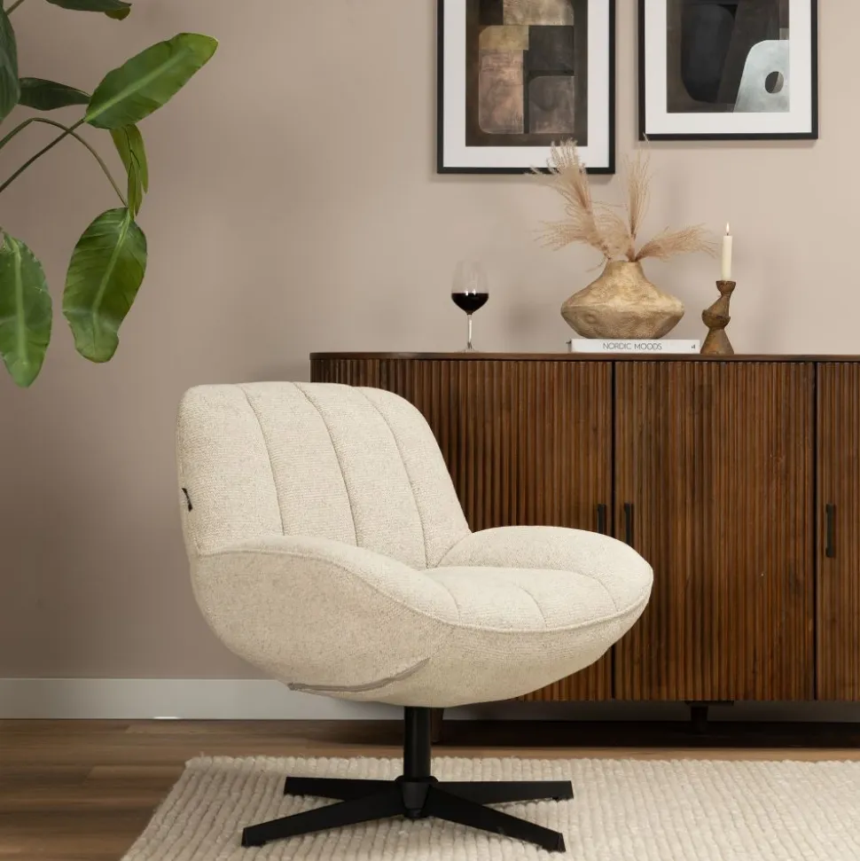 Draaifauteuil Siem is de ideale combinatie van comfort en stijl. De brede en zachte zitting maakt het een perfecte fauteuil om in te ontspannen. Dankzij het draaisysteem en het trendy design past hij moeiteloos in elk interieur. Een stijlvolle toevoeging die jouw interieur een boost geeft en zorgt voor dat lekkere thuisgevoel!