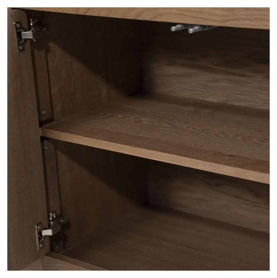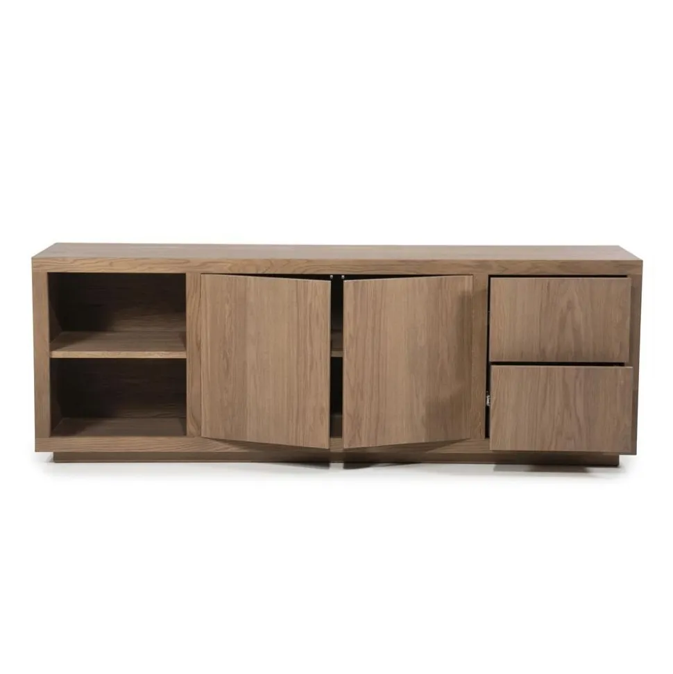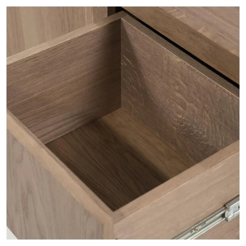 Het Helsinki dressoir valt op door zijn elegante ontwerp en het warme karakter van het eikenhout. De indeling is praktisch en overzichtelijk: de open vakken zijn perfect voor het uitstallen van decoratie of het plaatsen van apparatuur, terwijl de dichte deuren en laden ideaal zijn om al je spullen netjes uit het zicht op te bergen. Zo geniet je van een opgeruimde én stijlvolle leefruimte.