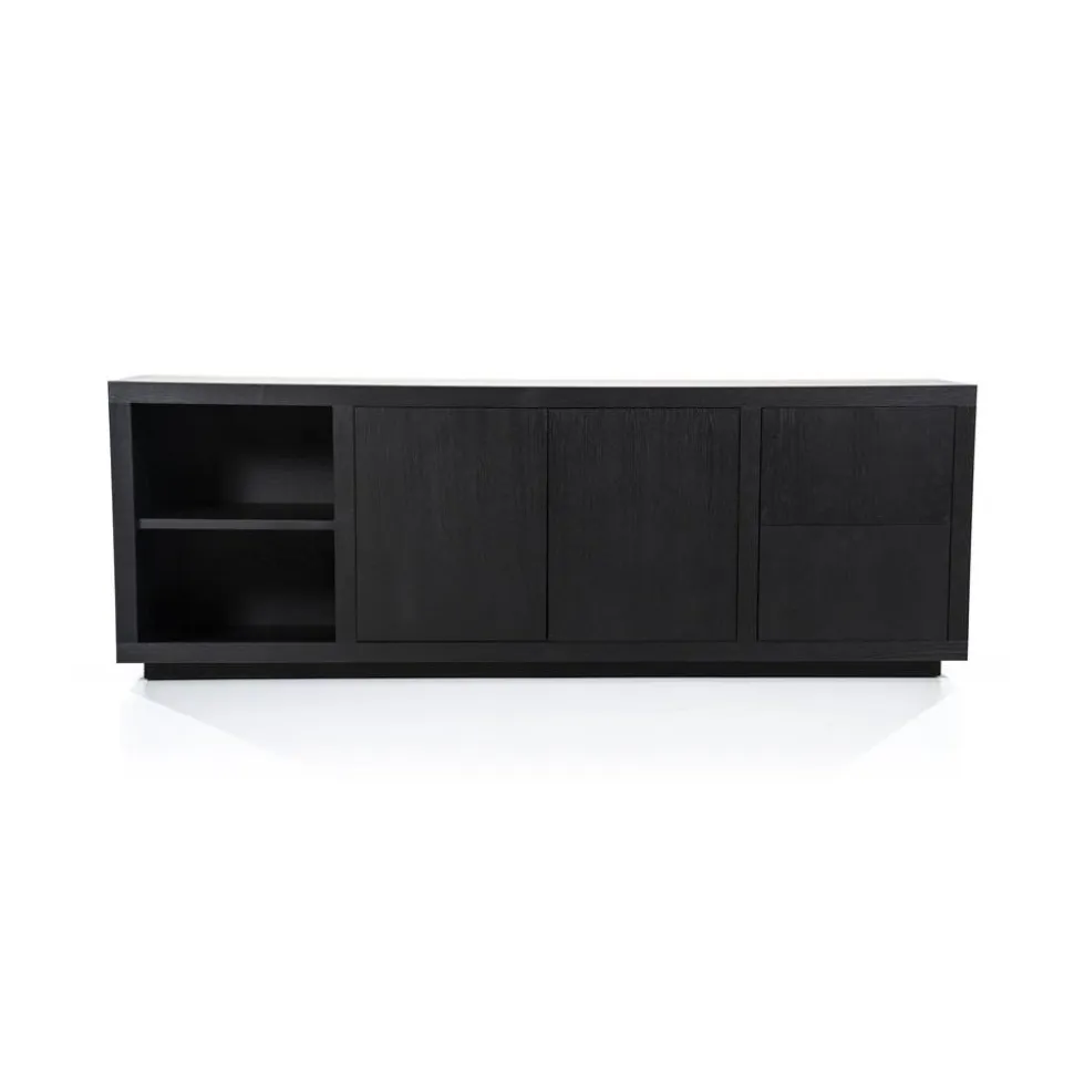 Het Helsinki dressoir valt op door zijn elegante ontwerp en het warme karakter van het eikenhout. De indeling is praktisch en overzichtelijk: de open vakken zijn perfect voor het uitstallen van decoratie of het plaatsen van apparatuur, terwijl de dichte deuren en laden ideaal zijn om al je spullen netjes uit het zicht op te bergen. Zo geniet je van een opgeruimde én stijlvolle leefruimte.
