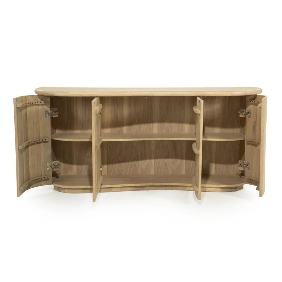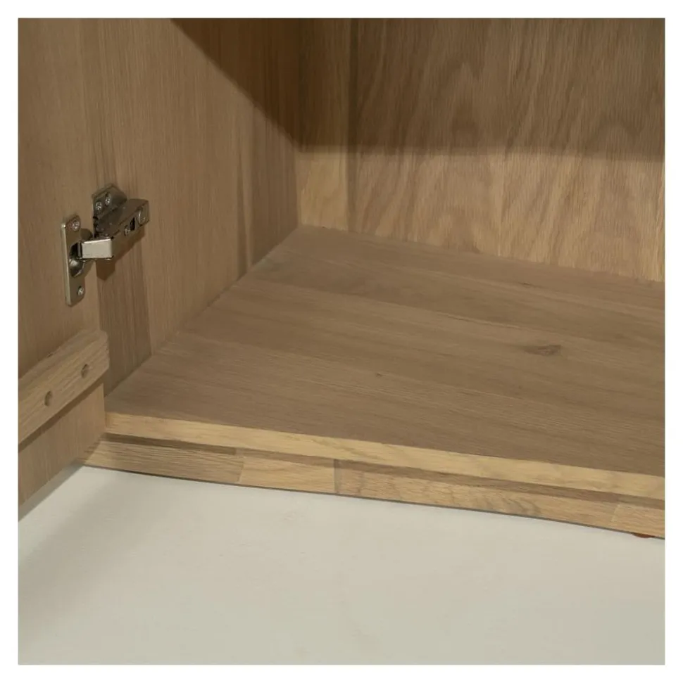 Dressoir Josh schittert door zijn natuurlijke uitstraling, mede dankzij de combinatie van massief eiken en hoogwaardig eikenfineer. De subtiele golfvorm in de voorzijde geeft het dressoir een elegante, vloeiende uitstraling die direct opvalt in elke woonkamer.