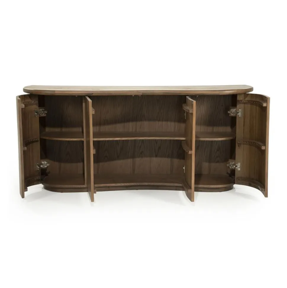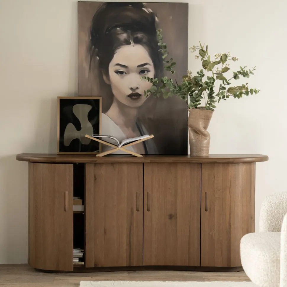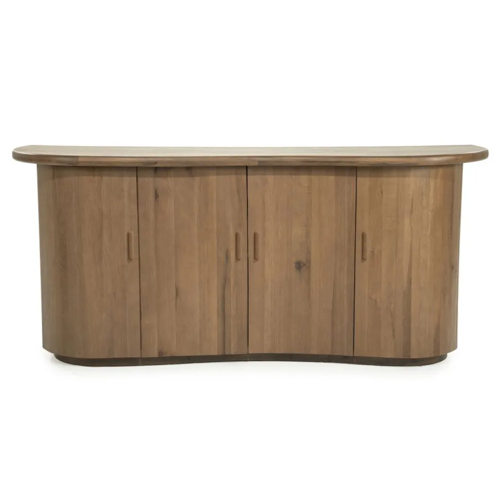 Dressoir Josh schittert door zijn natuurlijke uitstraling, mede dankzij de combinatie van massief eiken en hoogwaardig eikenfineer. De subtiele golfvorm in de voorzijde geeft het dressoir een elegante, vloeiende uitstraling die direct opvalt in elke woonkamer.