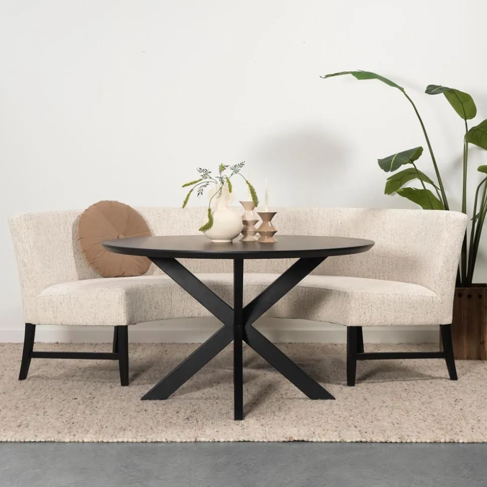 Wat past er beter bij een ronde eettafel dan een ronde eetkamerbank?! EetkamerbankBoris biedt uitkomst. Deze stijlvolle eetkamerbank is voorzien van pocketvering in de zitting en heeft een heerlijk zitcomfort om lekker lang te tafelen.
