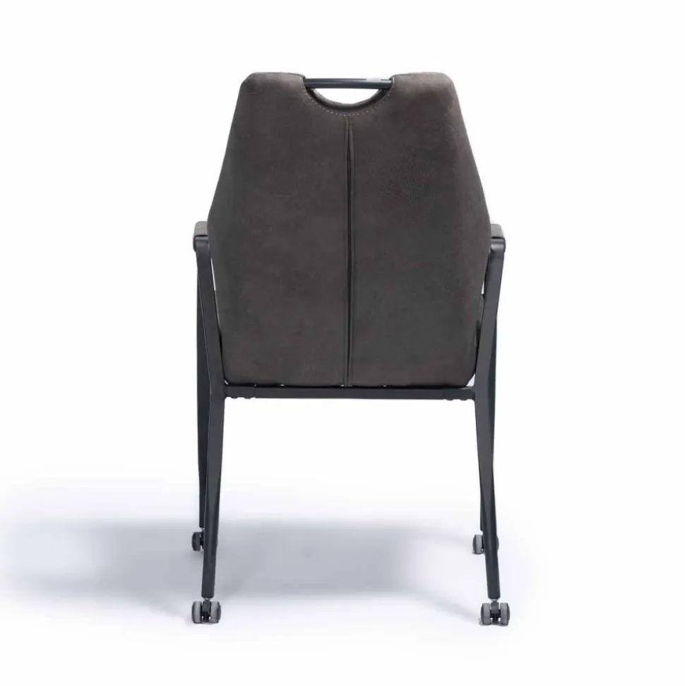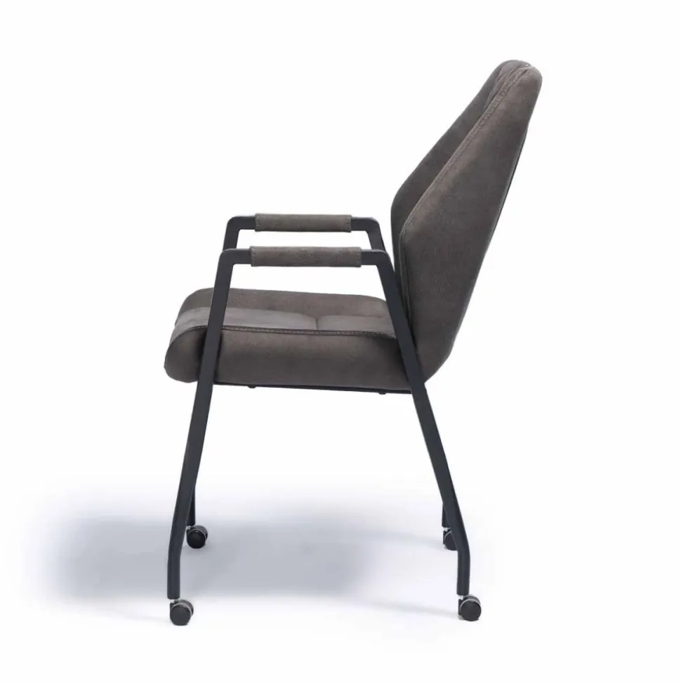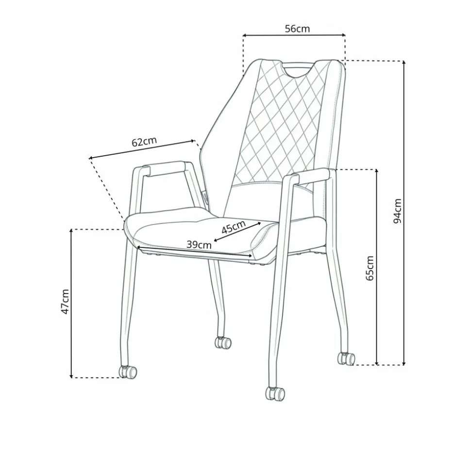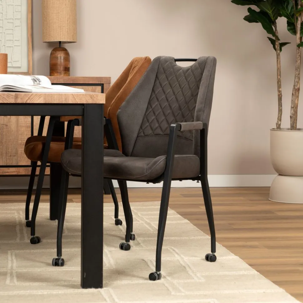 Eetkamerstoel Army is een klassieke stoel met fraai geruit stiksel in de rugleuning, en is voorzien van zwart metalen poten.