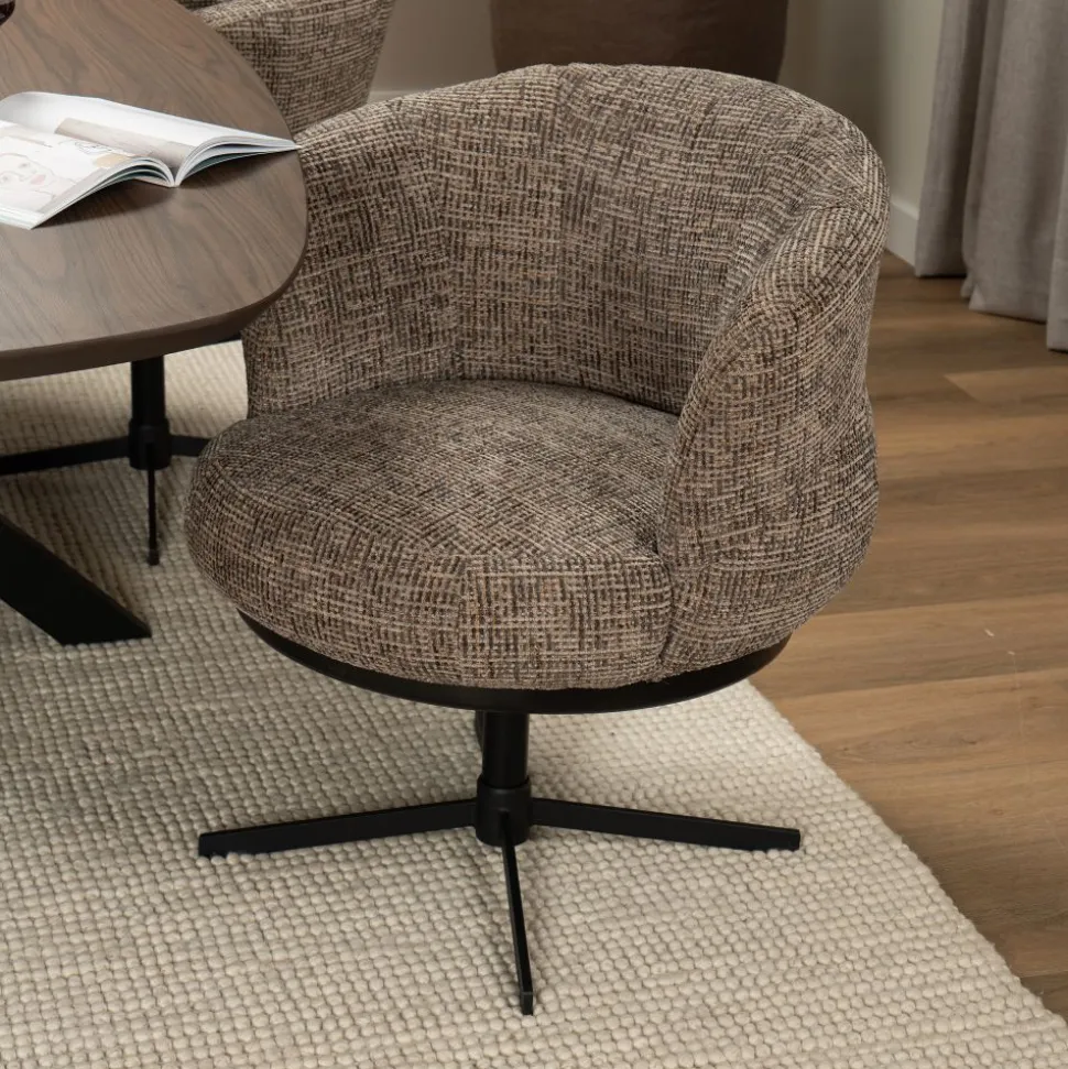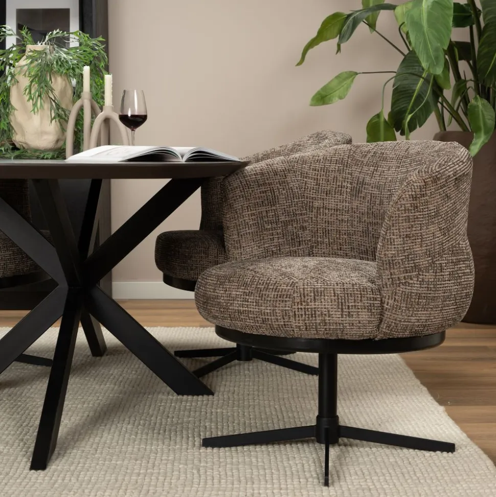 Eetkamerstoel Aswin combineert design en functionaliteit. Het metalen onderstel zorgt voor een stevige basis en maakt het mogelijk om 360 graden te draaien. De zitting met pocketvering biedt extra comfort, zodat je langdurig comfortabel kunt zitten. Stel de stoel eenvoudig samen in jouw gewenste kleur, zodat deze perfect past in jouw interieur.