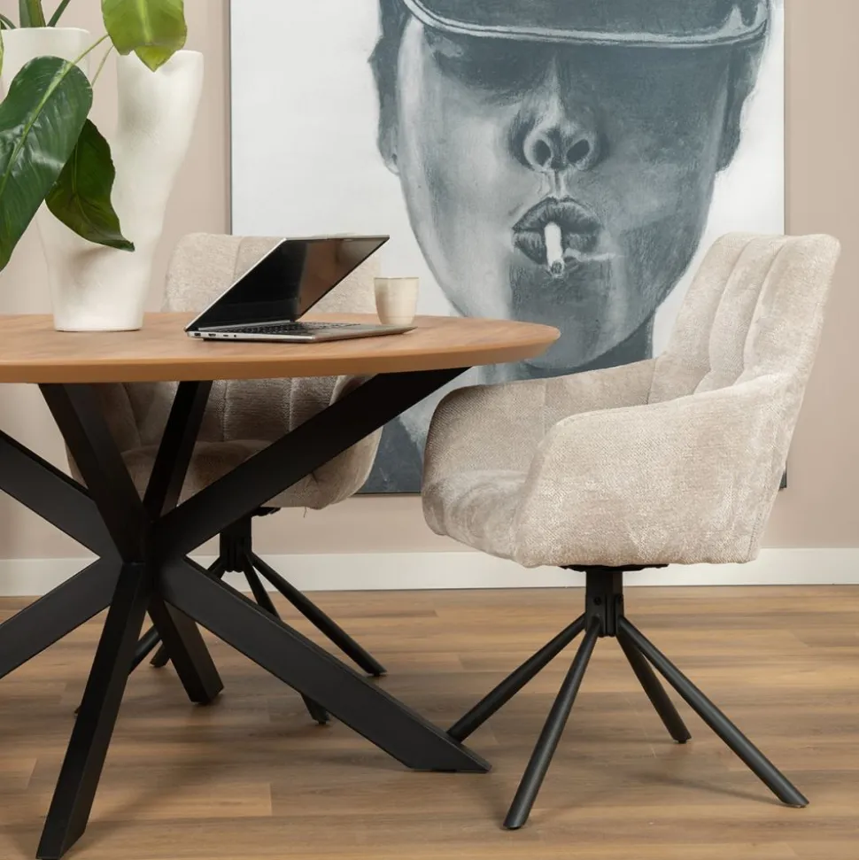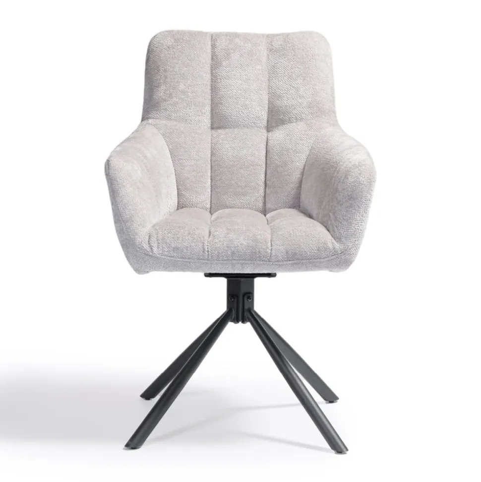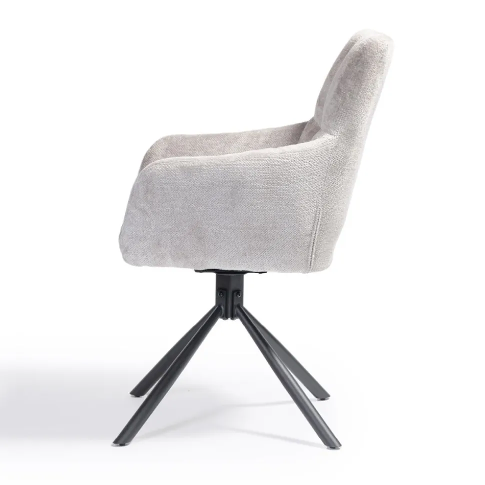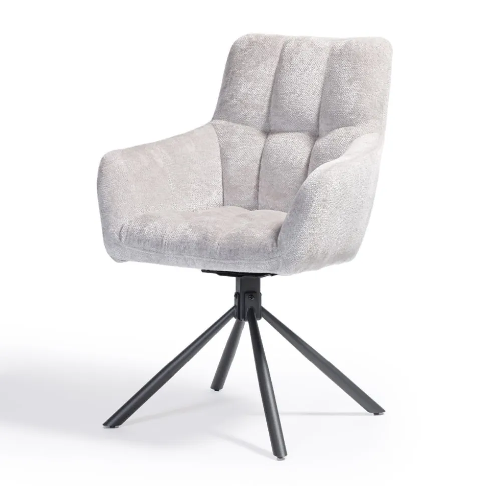 Onze eetkamerstoelDanzel is uitgevoerd in de trendy stof Tenderway. De stoel heeft een stoere kruispoot en een gaaf stiksel in de zit- en rugleuning. De stoel is zowel linksom als rechtsom 90° draaibaar. Stoel Danzel is verkrijgbaar in 3 kleuren: antraciet, blauw en ivoor.