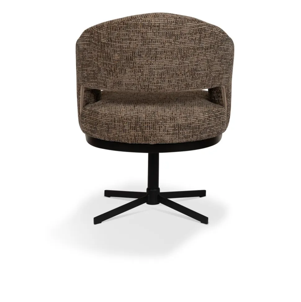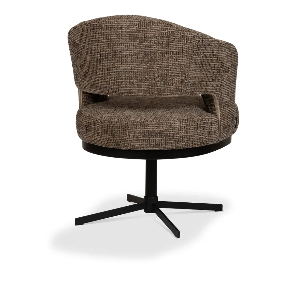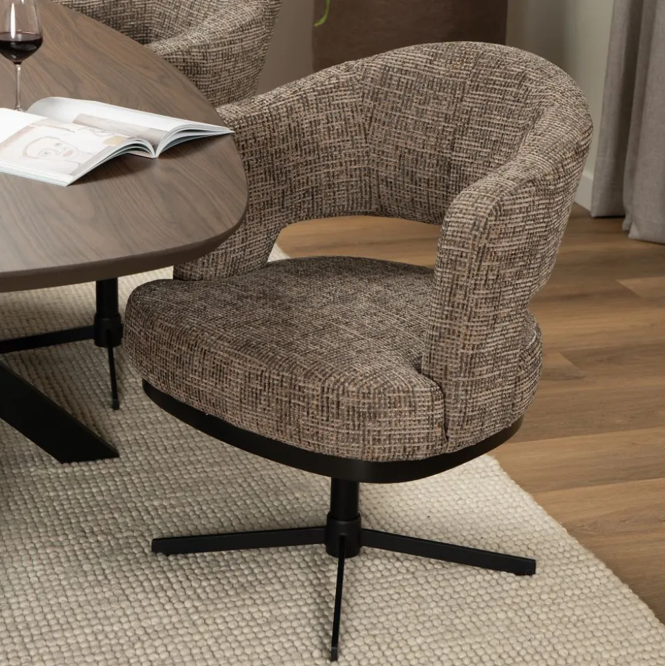 Eetkamerstoel Hannie combineert design en functionaliteit. Het metalen onderstel zorgt voor een stevige basis en maakt het mogelijk om 360 graden te draaien. De zitting met pocketvering biedt extra comfort, zodat je langdurig comfortabel kunt zitten. Stel de stoel eenvoudig samen in jouw gewenste kleur, zodat deze perfect past in jouw interieur.