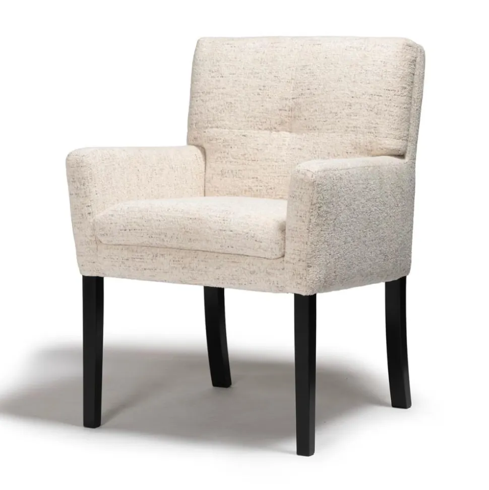 Deze stoel Haven is ontworpen volgens een eenvoudig kuipstoel ontwerp verfraaid met comfortabele kussens. Het wordt gekenmerkt door zachte vierkante stiksels op de rugleuning, wat een mooie afwerking toevoegt.