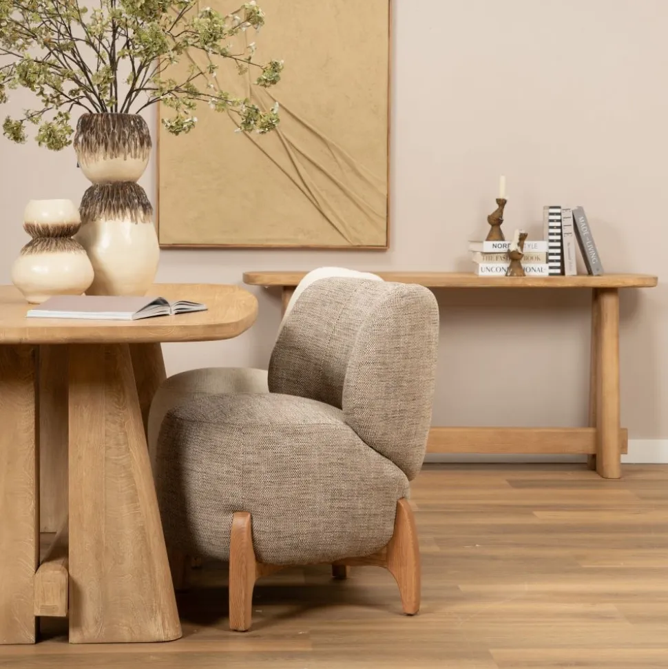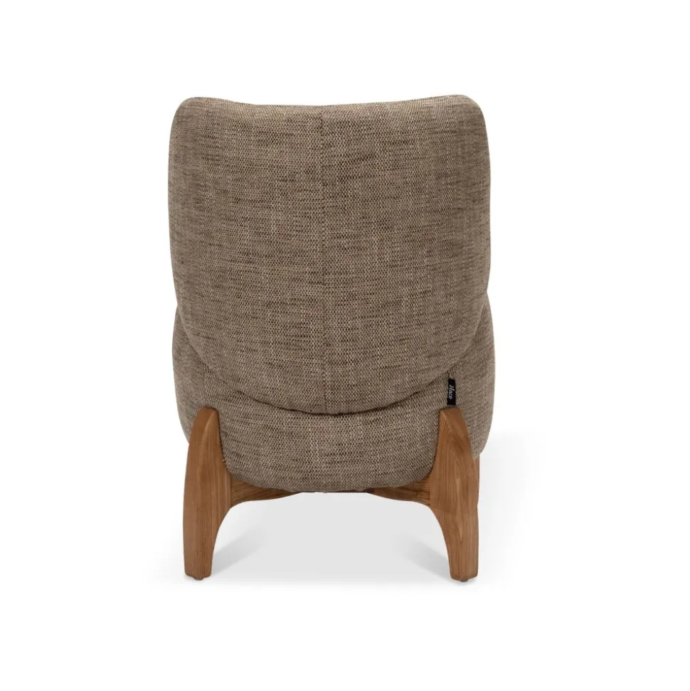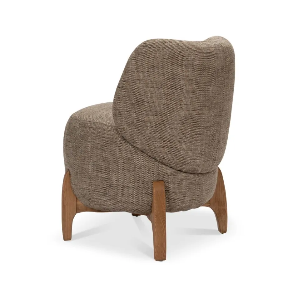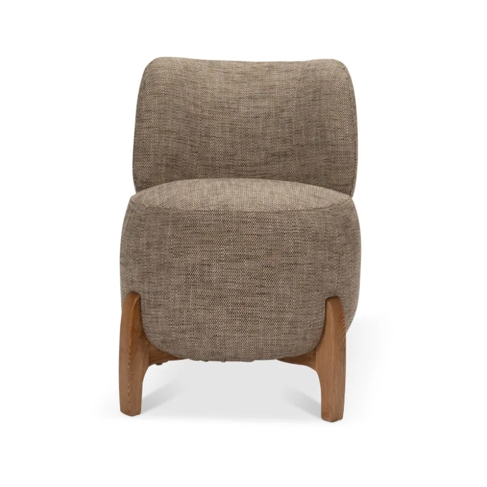 Eetkamerstoel Joy heeft een warme en natuurlijke uitstraling met een speels, rond design. De zachte vormen en de combinatie van stof en hout zorgen voor een rustige en uitnodigende look die perfect past in een modern of Scandinavisch interieur.