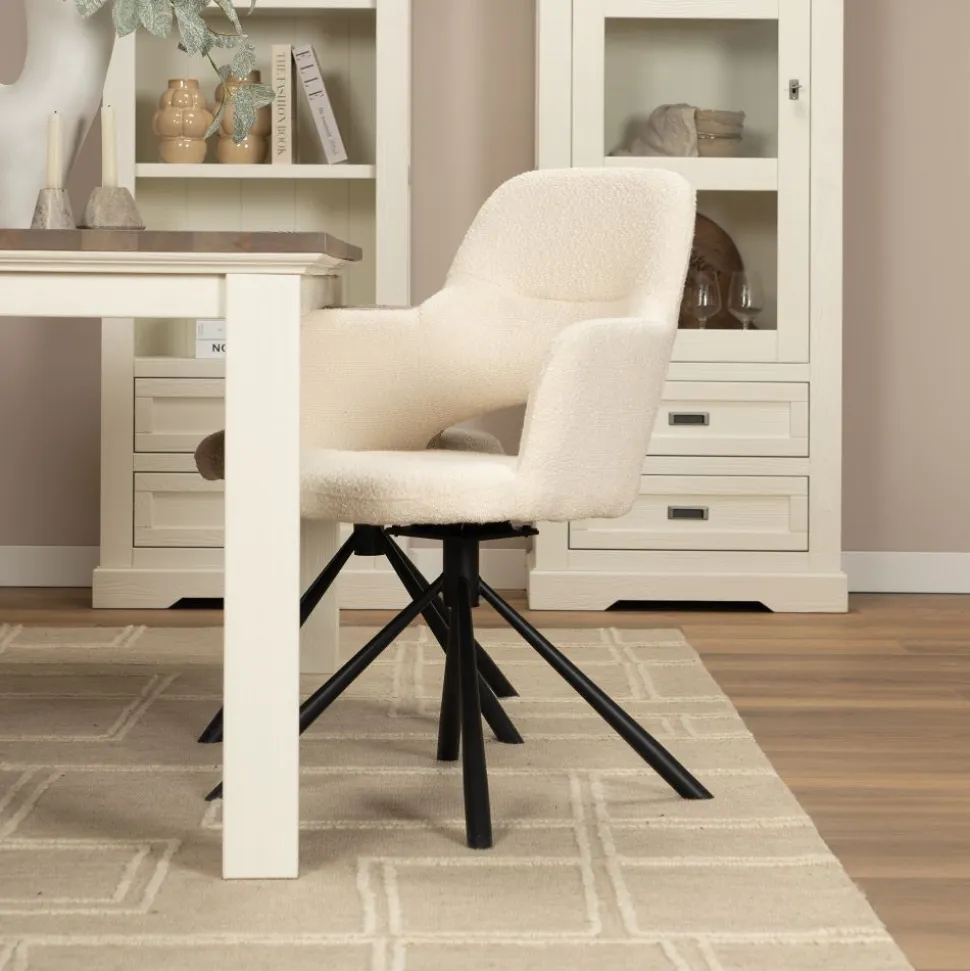 Onze eetkamerstoelKevin is uitgevoerd in een trendy stof. De stoel heeft een gaaf stiksel in de zit- en rugleuning. Stoel Kevin is verkrijgbaar in 2 kleuren: Crème en taupe.