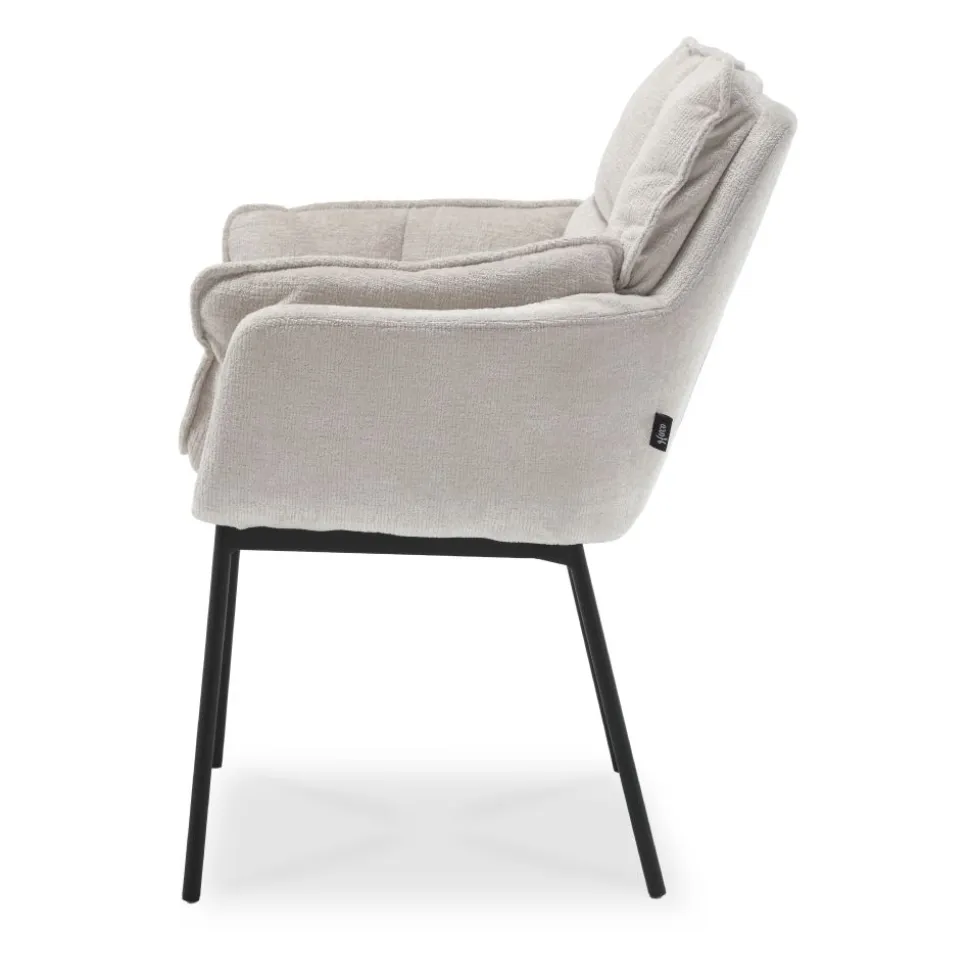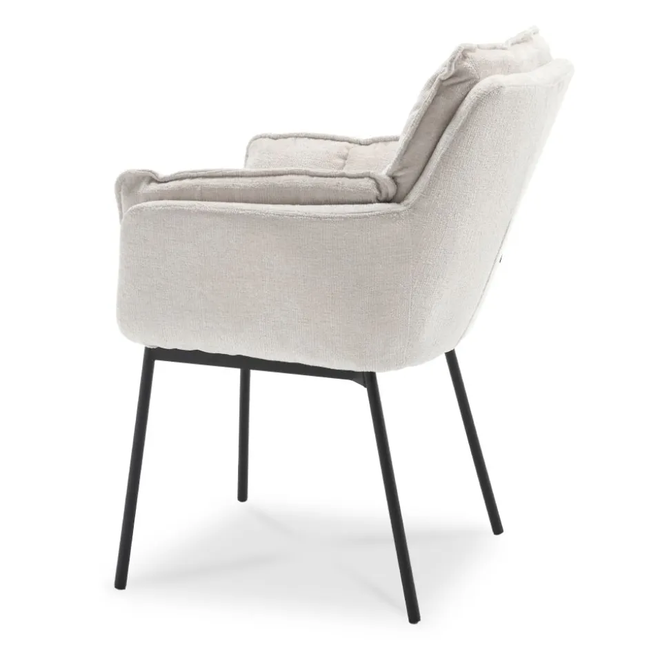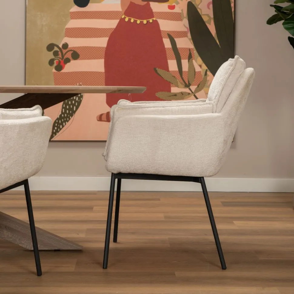 Eetkamerstoel Luca is een trendy stoel bekleed met een fijne stof en heeft mooie, smalle, metalen poten. De kuipstoel met armleuningen heeft écht een fantastisch zitcomfort. Dat je moet je zelf ervaren! Dit maakt het de perfecte stoel voor lange, gezellige avondjes aan je trendy eettafel!