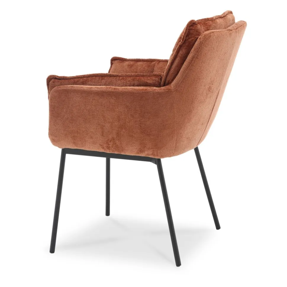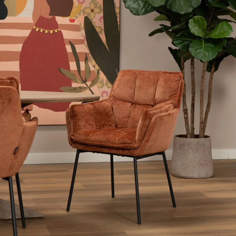 Eetkamerstoel Luca is een trendy stoel bekleed met een fijne stof en heeft mooie, smalle, metalen poten. De kuipstoel met armleuningen heeft écht een fantastisch zitcomfort. Dat je moet je zelf ervaren! Dit maakt het de perfecte stoel voor lange, gezellige avondjes aan je trendy eettafel!