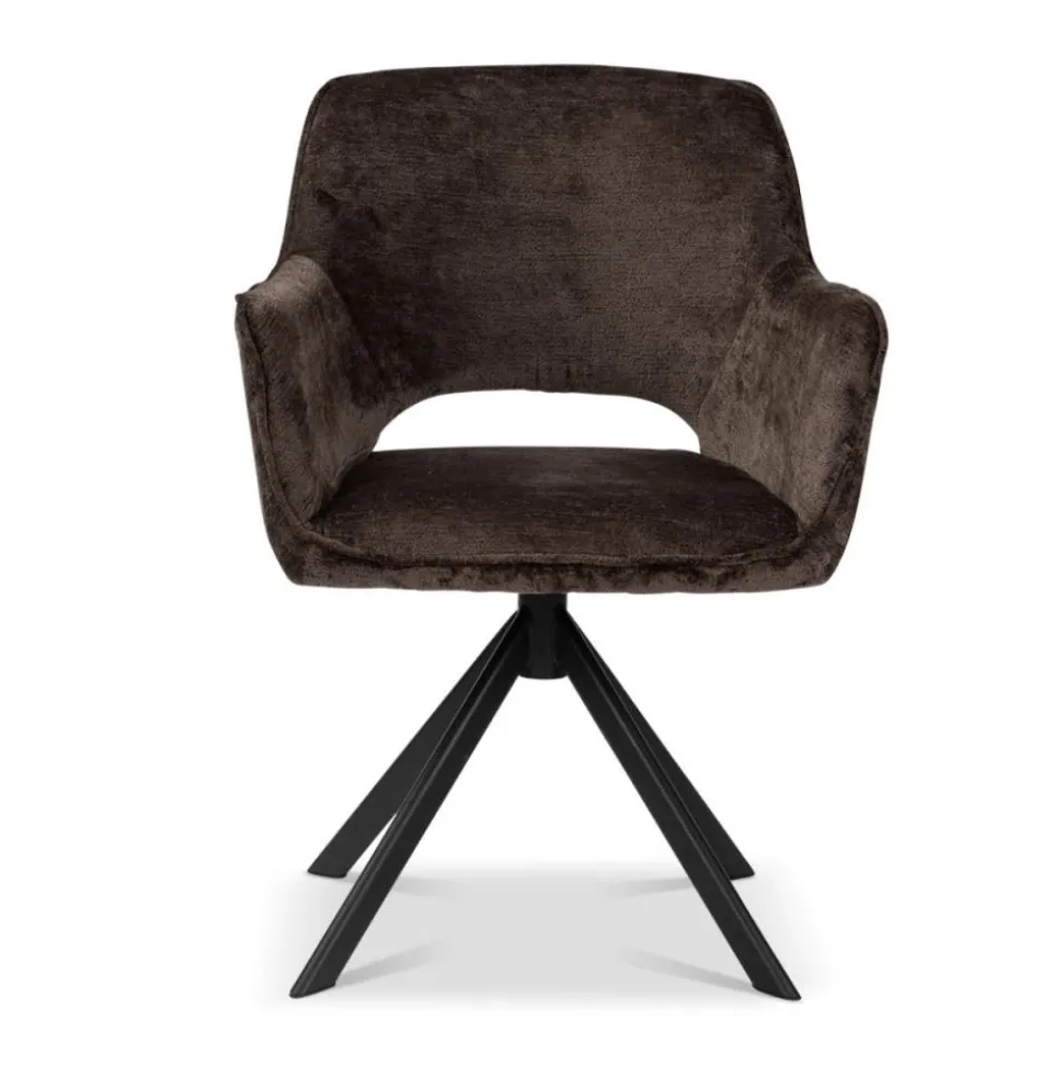 Onze eetkamerstoelLynda is uitgevoerd in een fijne stof. De stoel heeft een gave opening in de rugleuning, wat zorgt voor een ruimtelijk effect. De stoel staat op een stoere, metalen kruispoot die zwart van kleur is. Stoel Lynda is verkrijgbaar in 3 kleuren: bruin, crème en taupe.