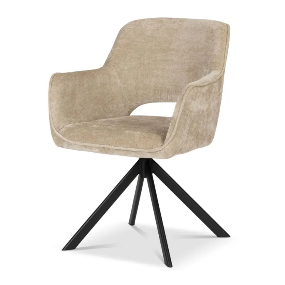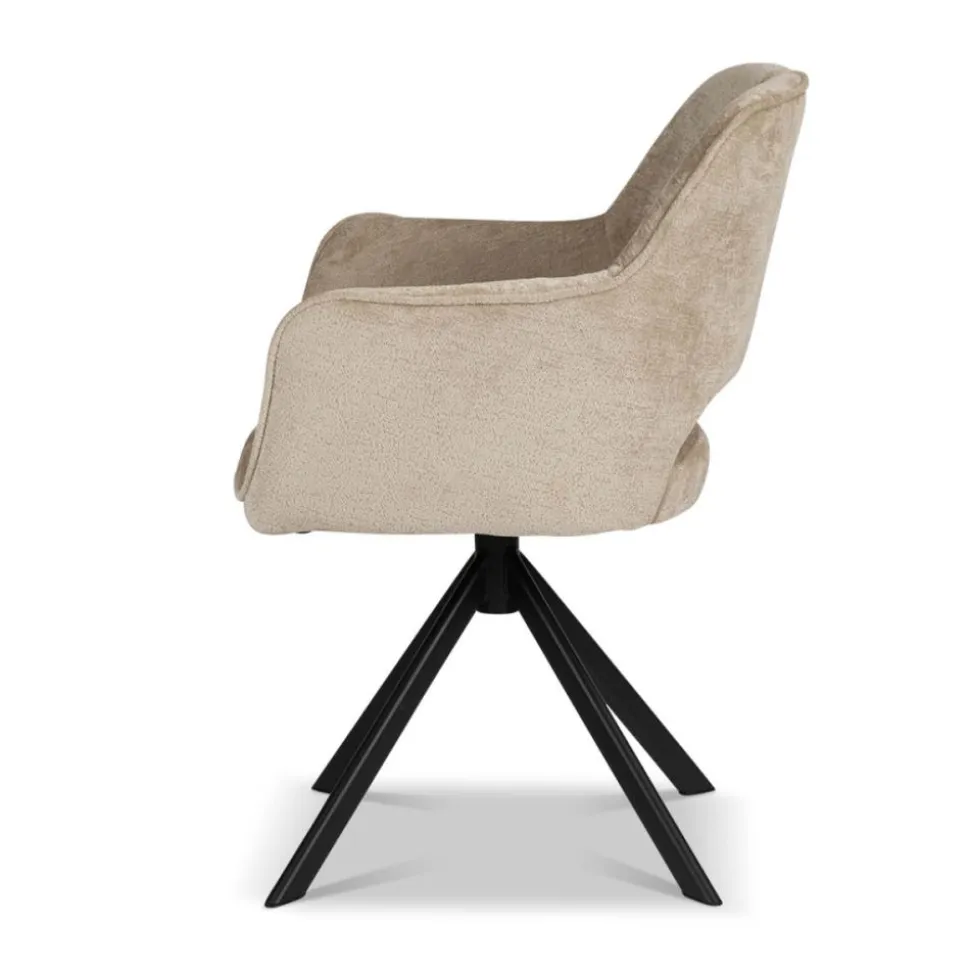 Onze eetkamerstoel Lynda is uitgevoerd in een fijne stof. De stoel heeft een gave opening in de rugleuning, wat zorgt voor een ruimtelijk effect. De stoel staat op een stoere, metalen kruispoot die zwart van kleur is. Stoel Lynda is verkrijgbaar in 3 kleuren: bruin, crème en taupe.