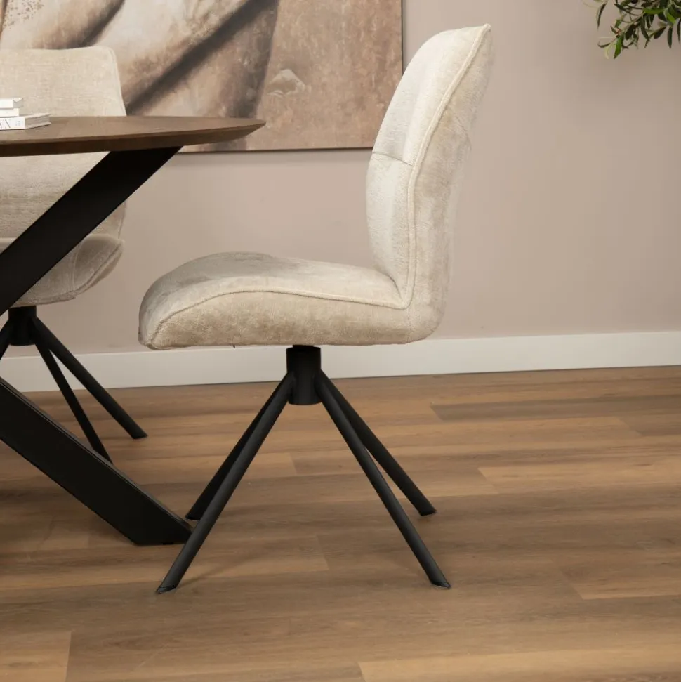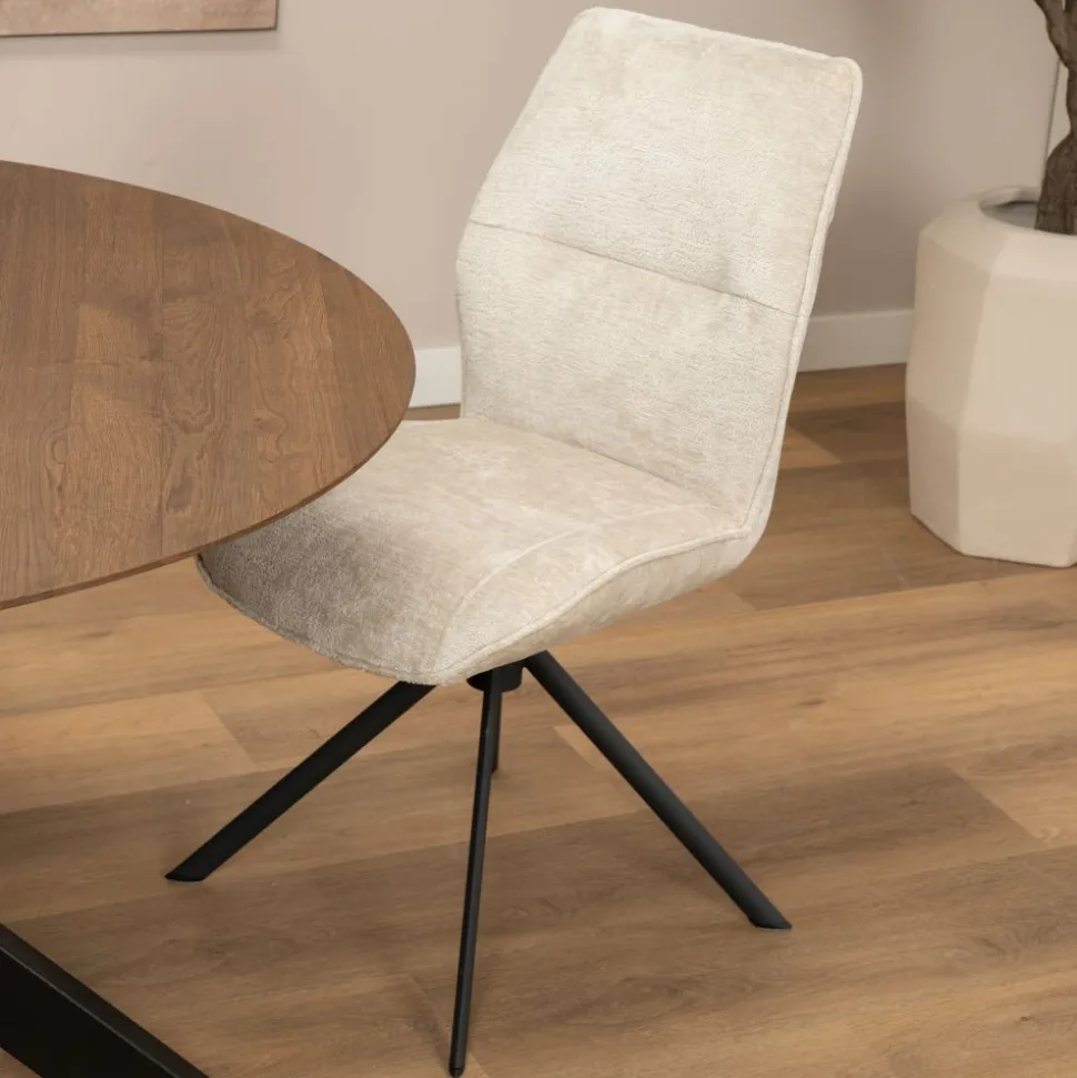 De eetkamerstoel Lynsey biedt comfort in een eigentijds design. Met zachte bekleding, een ergonomische zitting en subtiele stiknaden straalt de stoel stijl uit. Het zwarte metalen onderstel geeft een moderne en stoere touch.