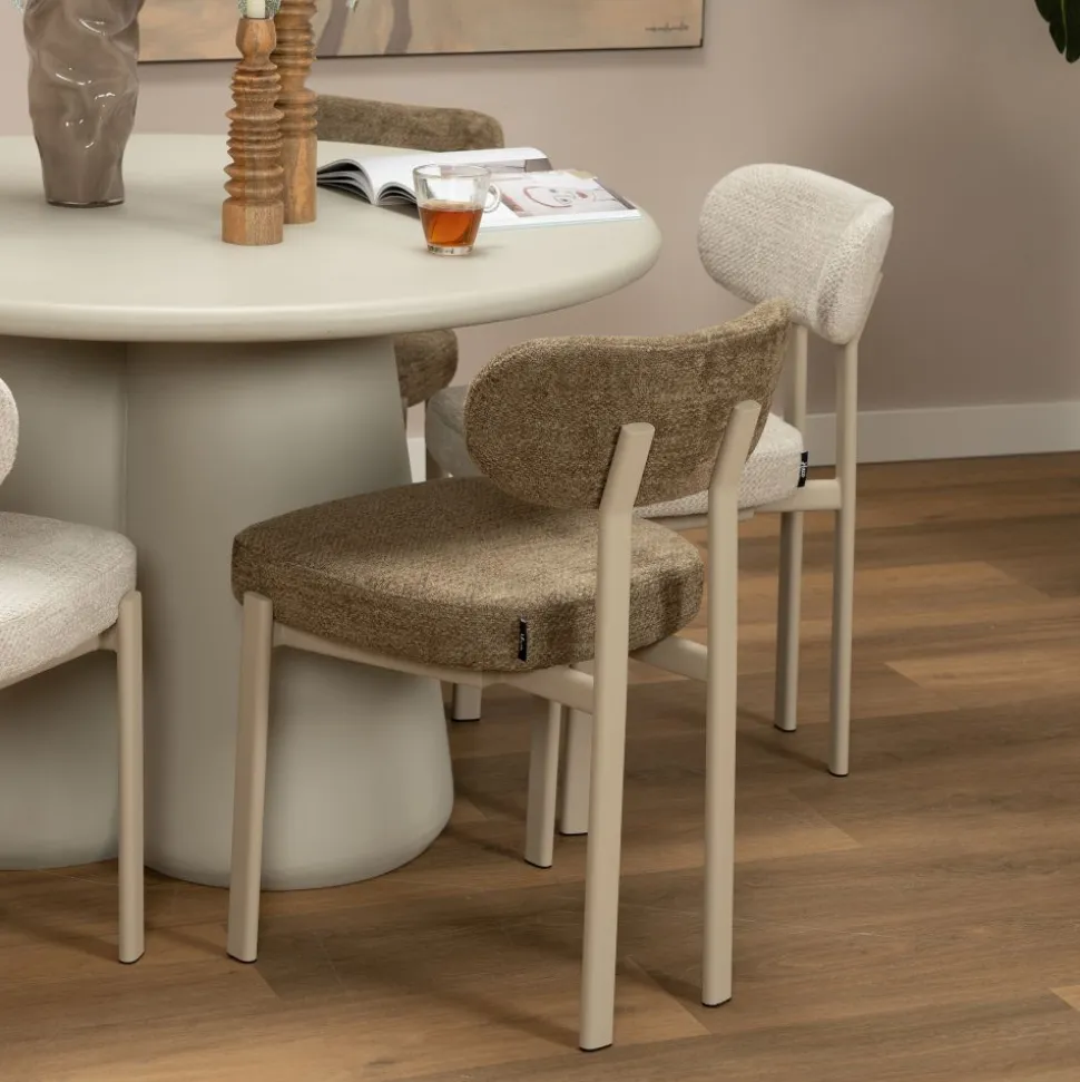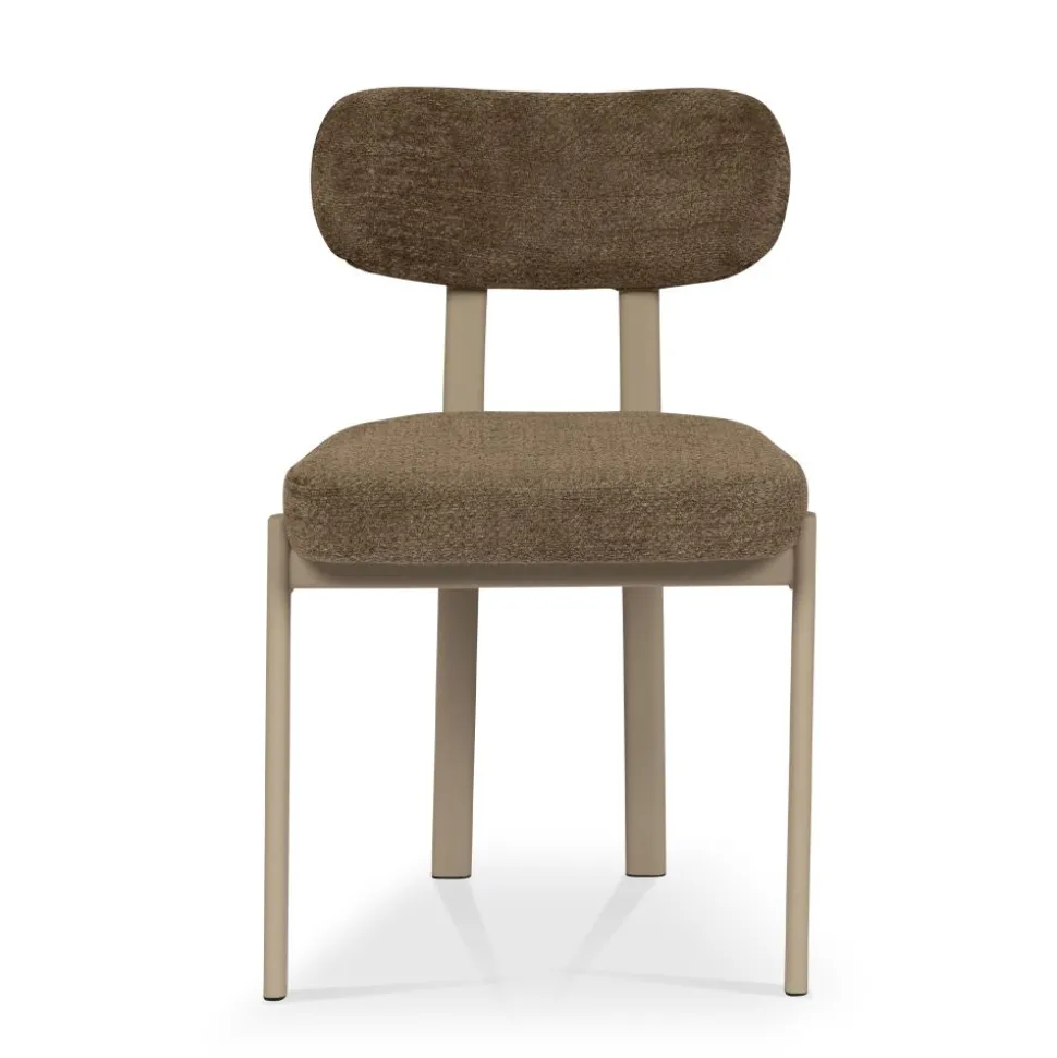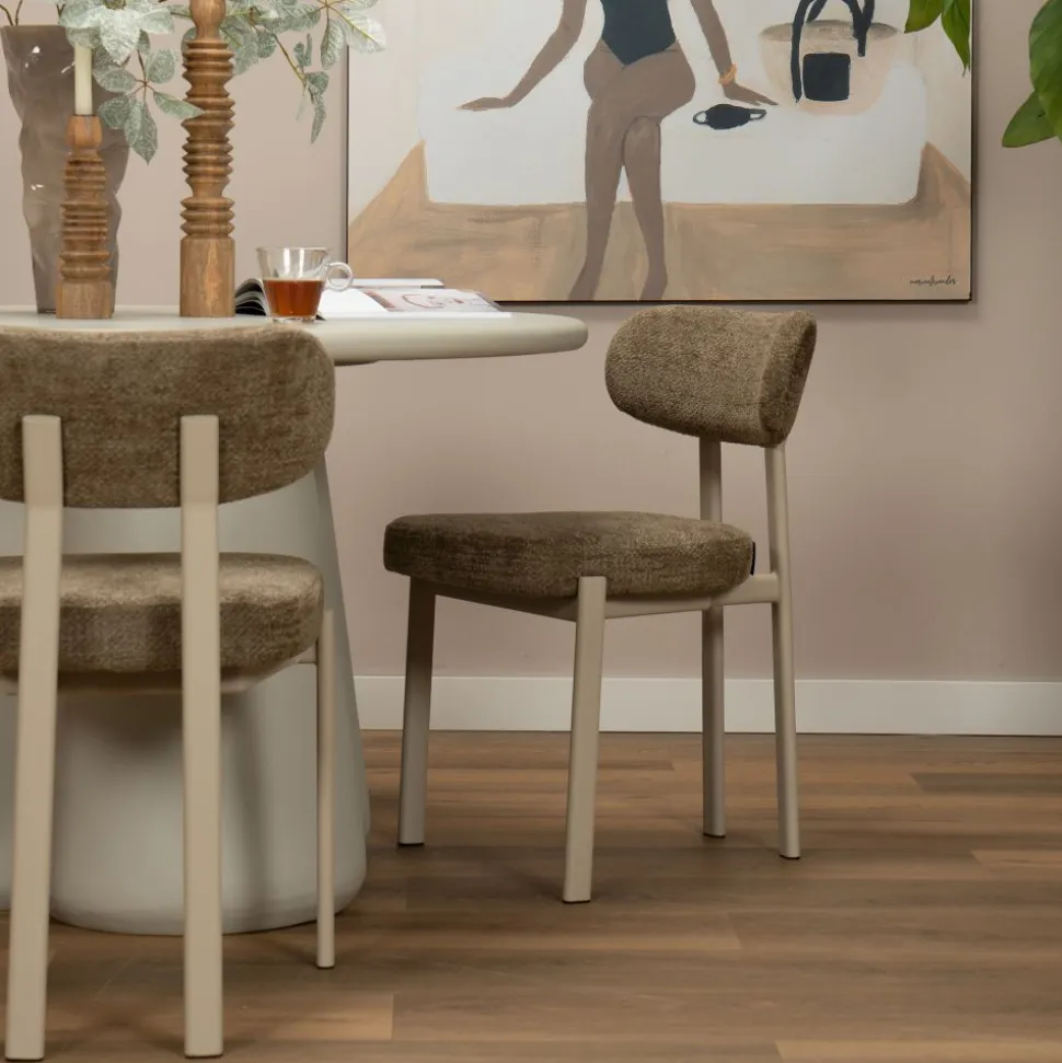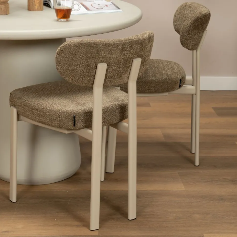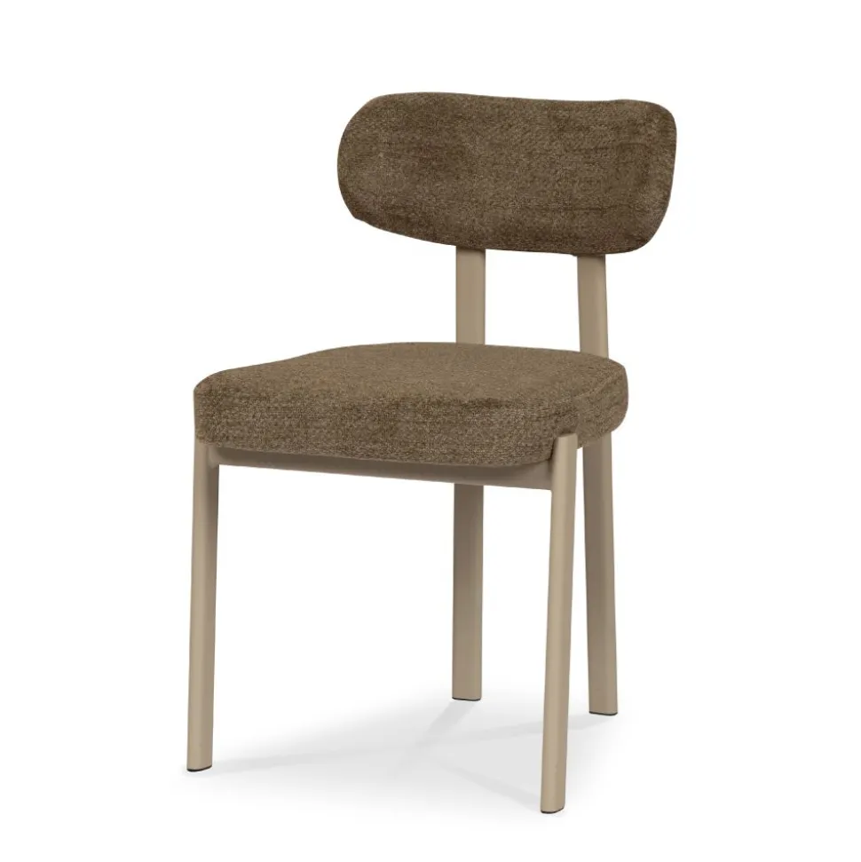Breng warmte en comfort in je interieur met de stijlvolle eetkamerstoel Marlou. De zachte, taupe bekleding nodigt uit om heerlijk te zitten, terwijl het stevige metalen frame zorgt voor stabiliteit. Dankzij het moderne maar tijdloze design past deze stoel perfect in elke keuken of woonkamer. Ideaal voor lange avonden aan de bar met familie en vrienden.