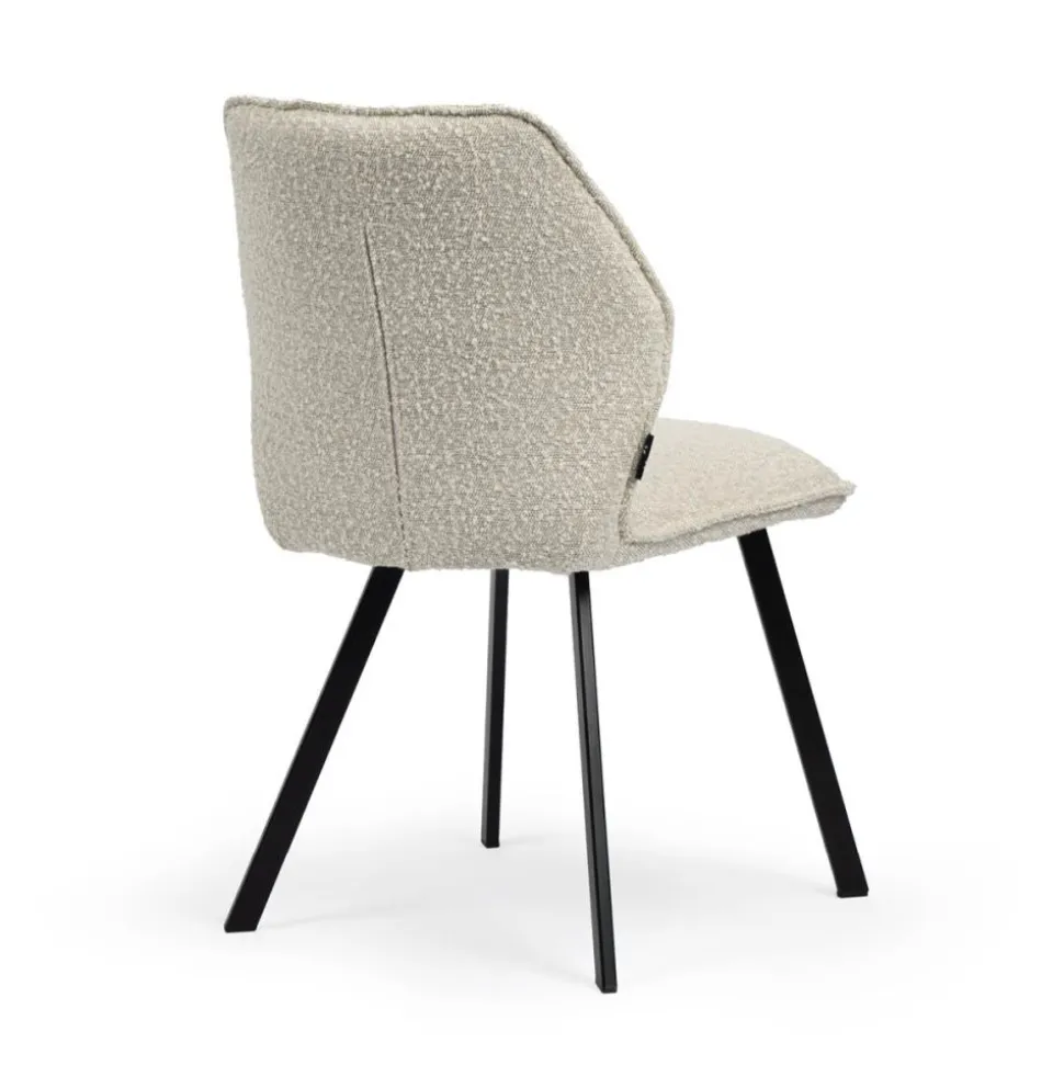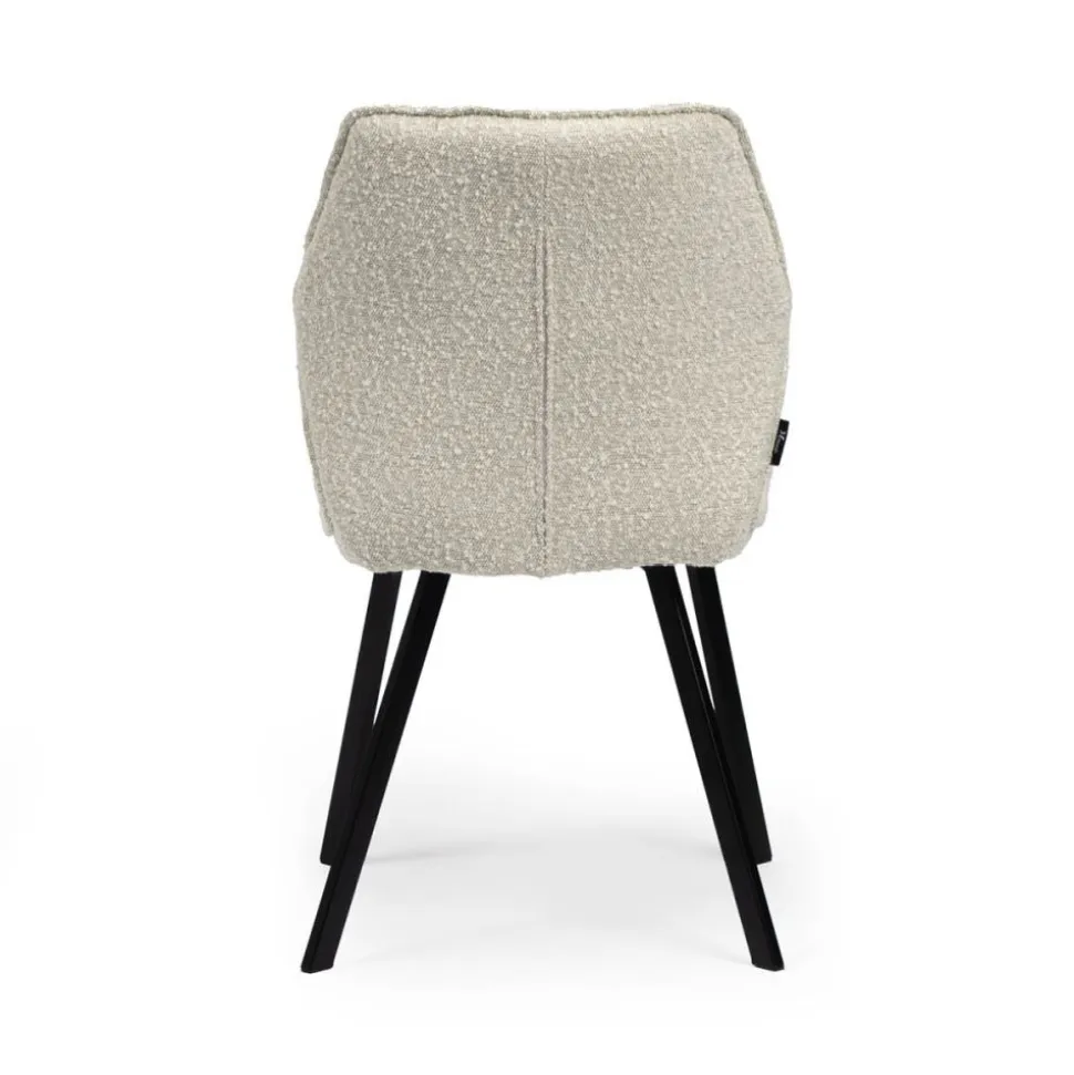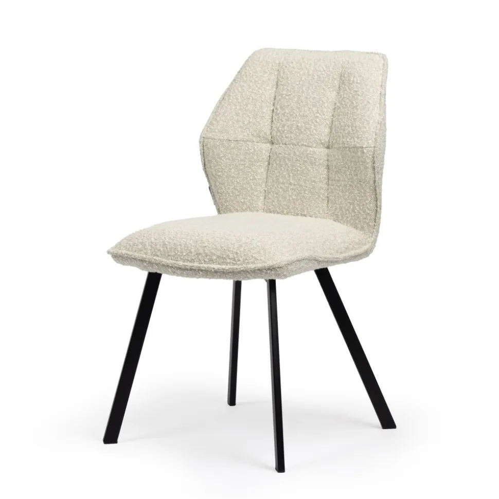 Onze eetkamerstoel Micha is uitgevoerd in een trendy, bouclé stof. De stoel heeft een stiksel in de zit- en rugleuning en een metalen onderstel dat zwart van kleur is. Eetkamerstoel Micha is verkrijgbaar in de kleur: crème. Deze hippe stoel is de betaalbare oplossing voor jouw moderne woonkamer, waardoor je kennis maakt met dat lekkere thuisgevoel.