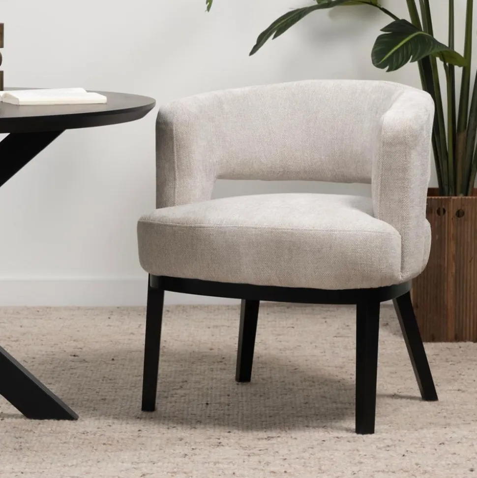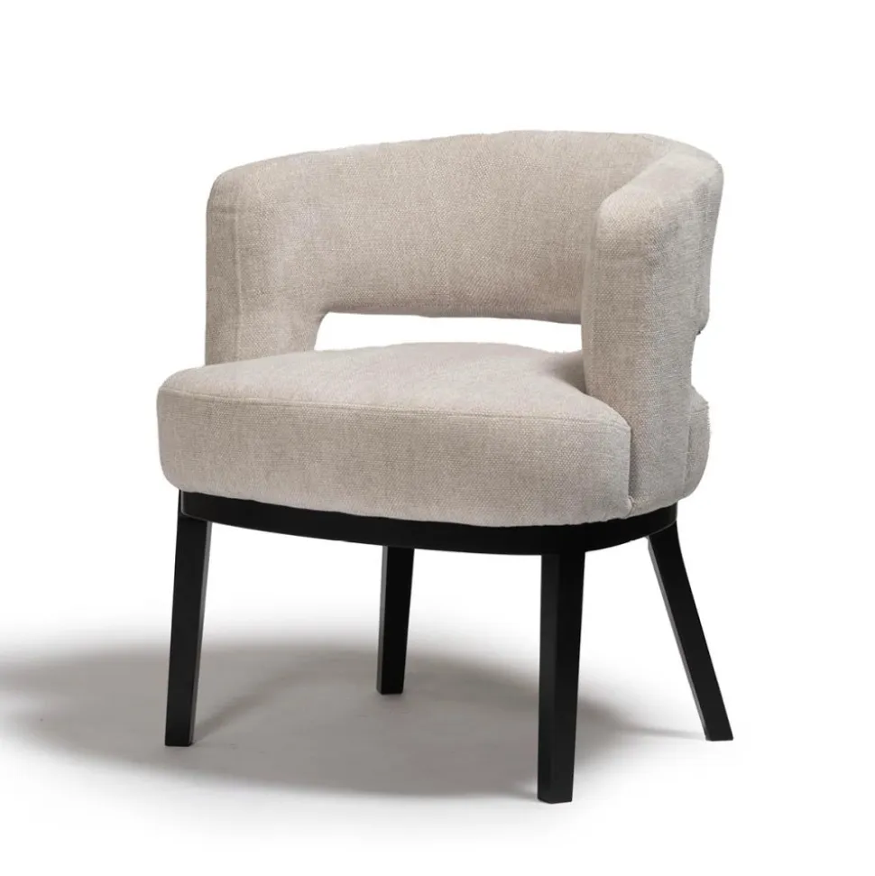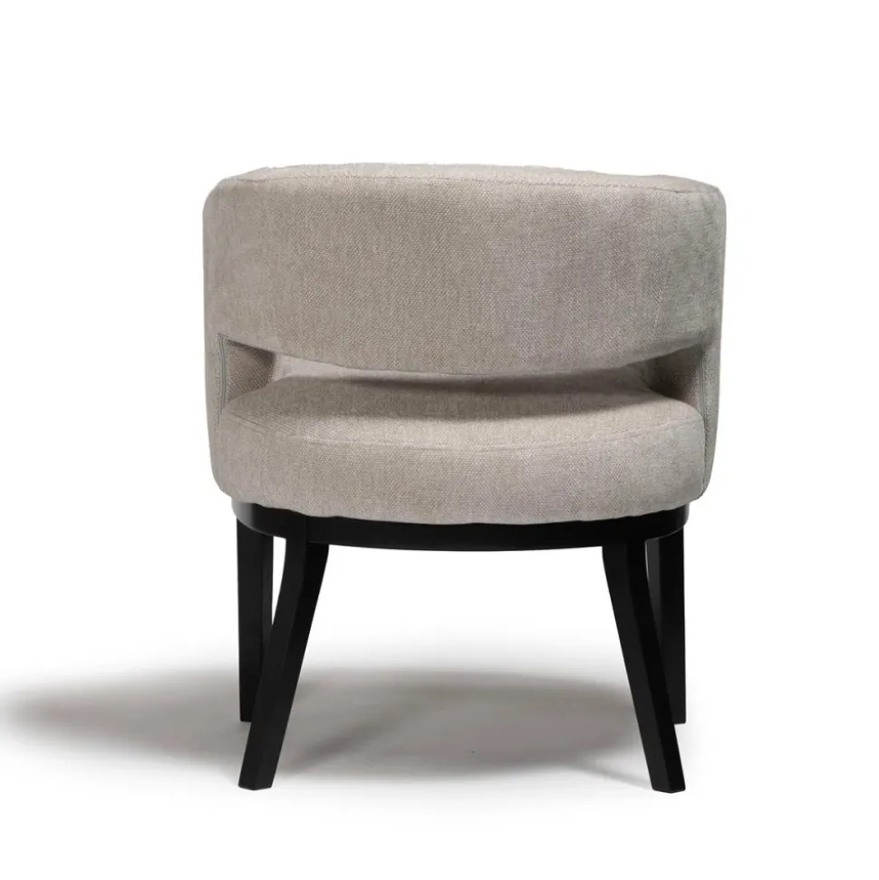 Deze comfortabele stoel, genaamd Ravena, biedt een heerlijke zitervaring dankzij zijn fijne zitcomfort. Hij staat op vier elegante zwarte houten poten. Het getoonde model is uitgevoerd met standaard poten en bekleed met de Impala 196 stof. Eetkamerstoel Roffa is verkrijgbaar in talloze kleuren en stofsoorten, zodat je de perfecte keuze kunt maken die bij jouw smaak en interieur past.