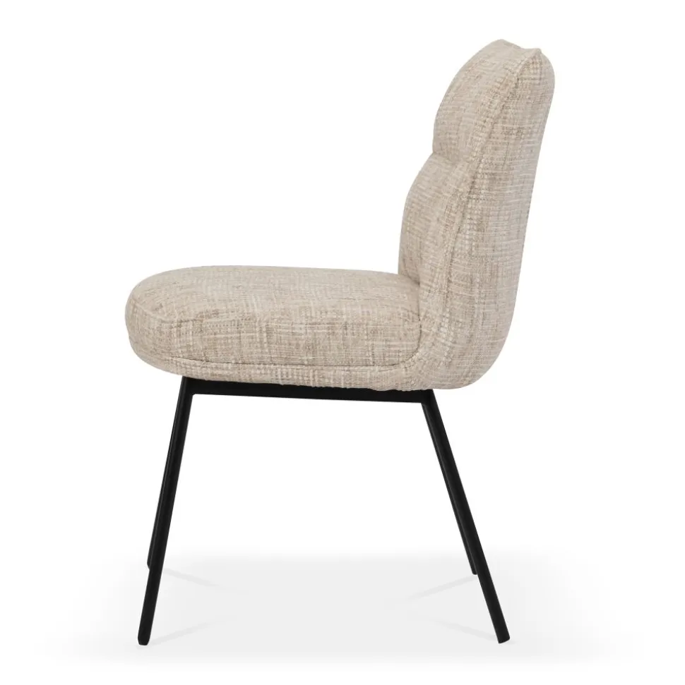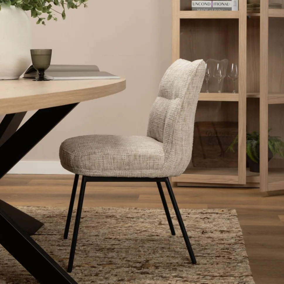 De eetkamerstoel Rico is uitgevoerd in een zachte stof en voorzien van een comfortabele rug- en zitting. Het zwarte metalen onderstel geeft de stoel een moderne uitstraling. Stoel Rico is verkrijgbaar in meerdere kleuren.